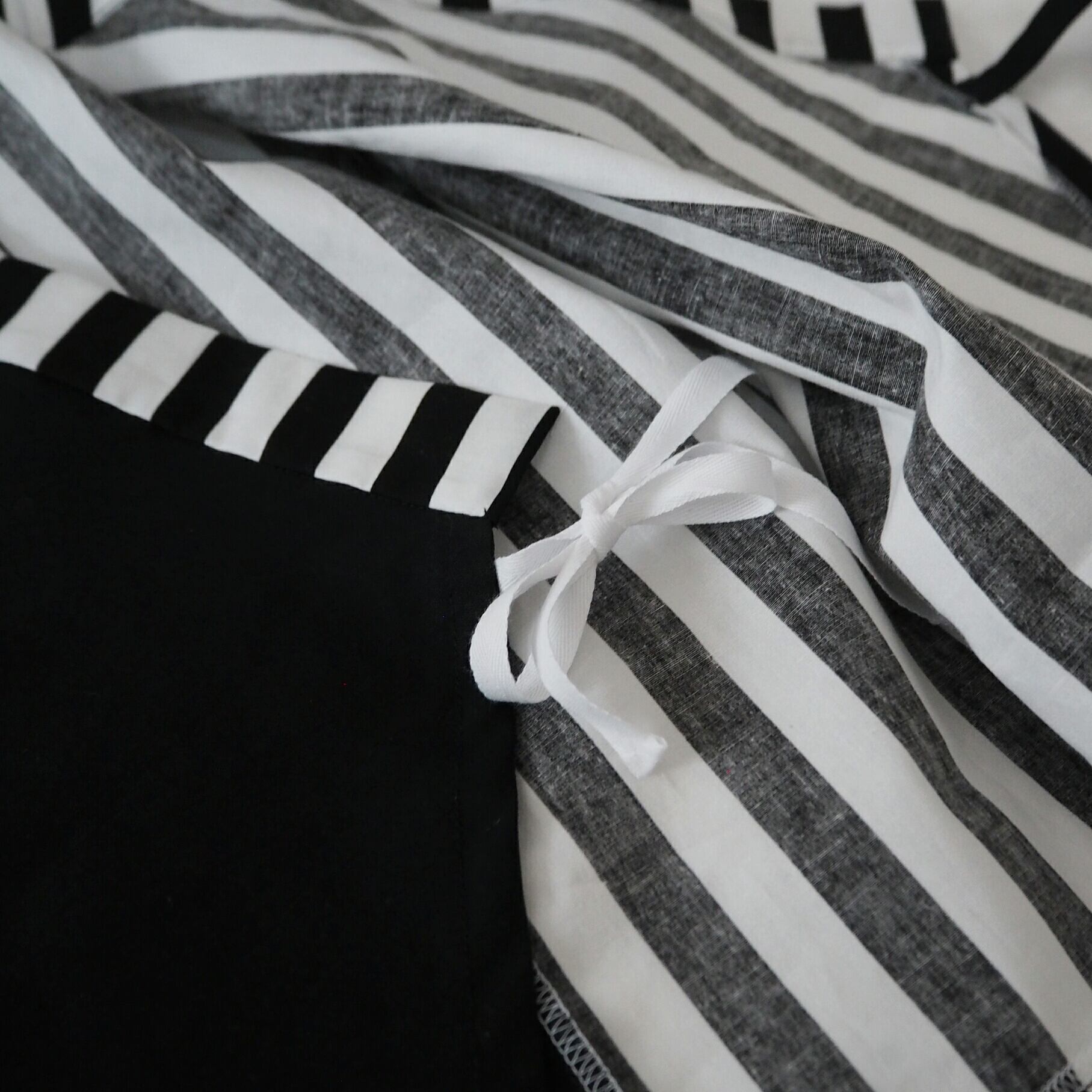 モノトーンのストライプボーダーと無地の組み合わせで作った、浴衣(甚平)です。