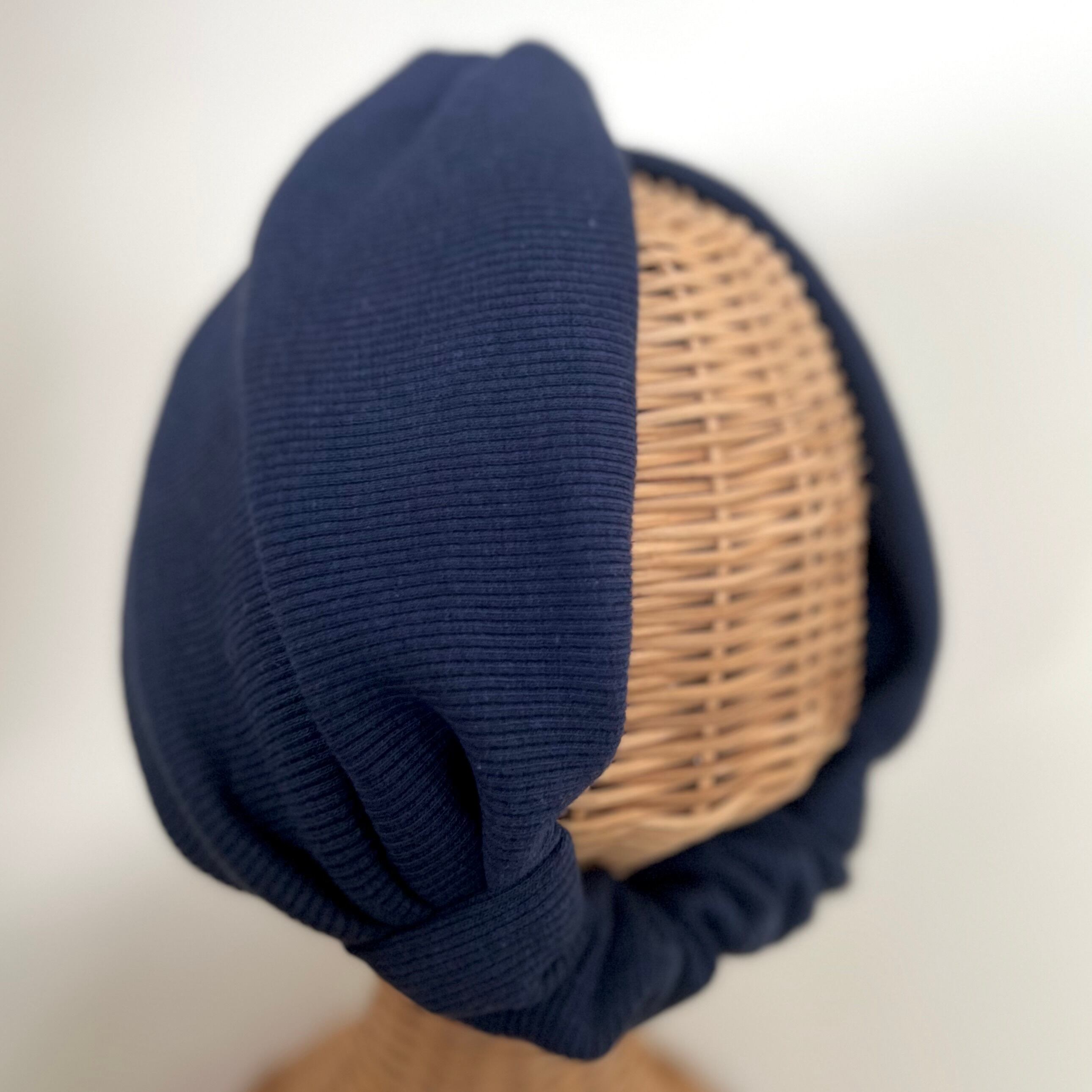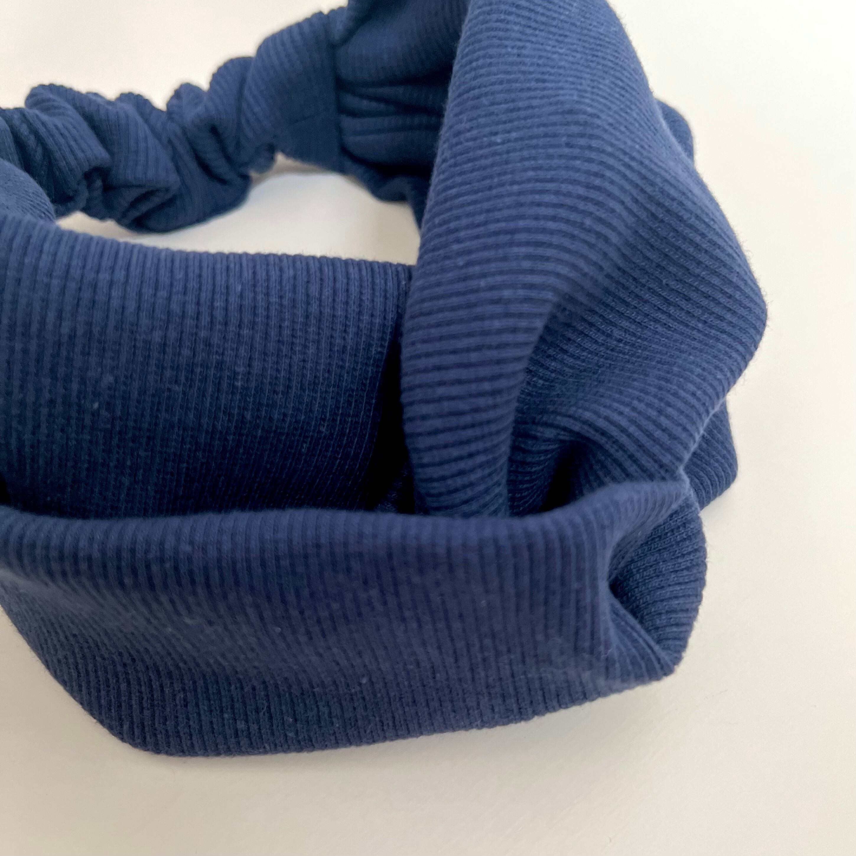 リブニットの結び目の様なデザインの二本使いのヘアバンドです。
