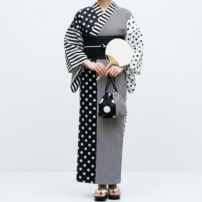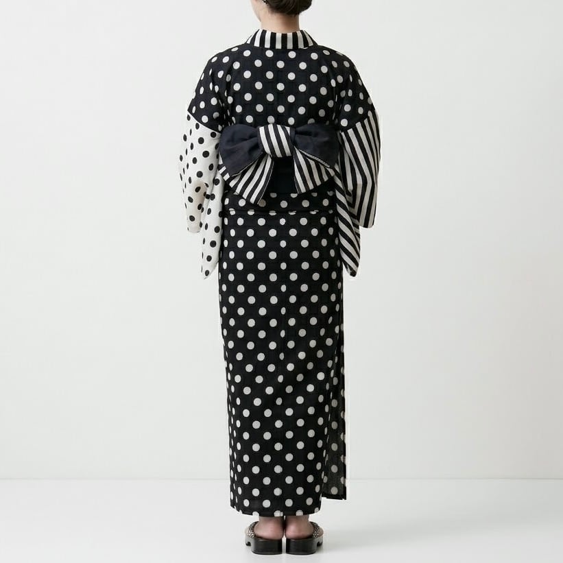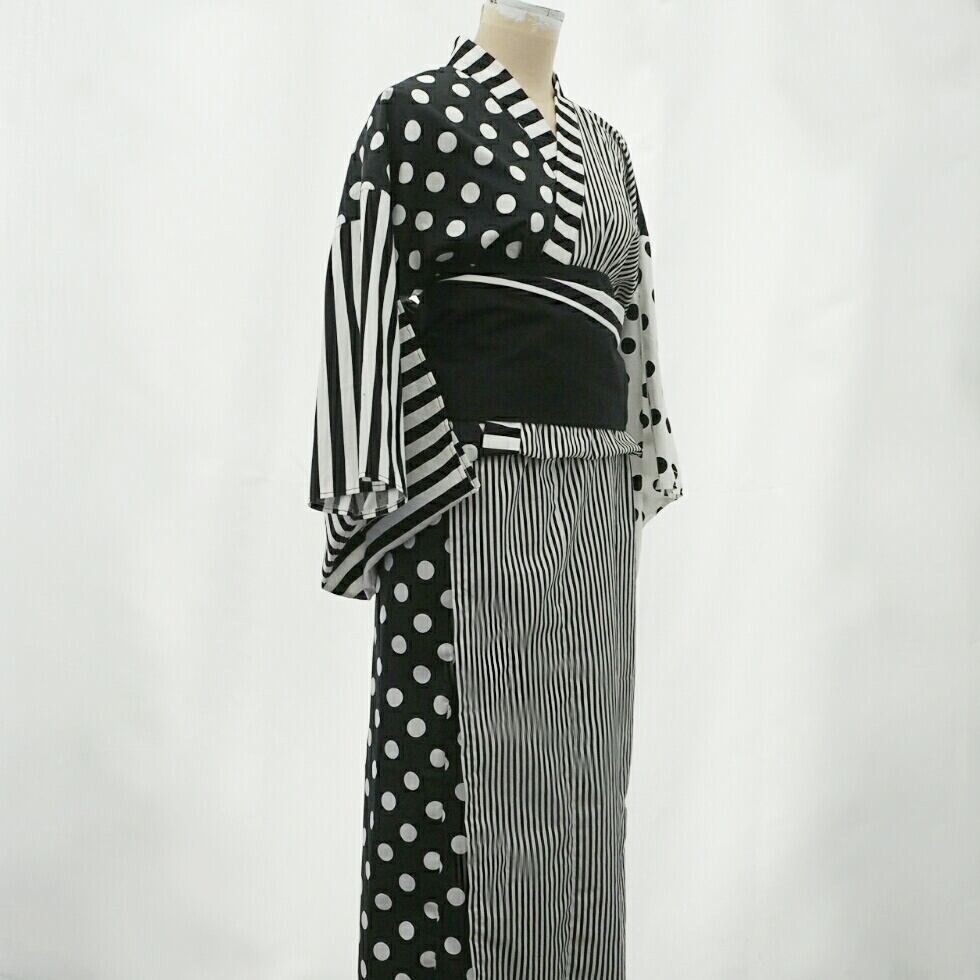 浴衣 (帯付き) ☆ モノトーン ドット × ストライプ ボーダー