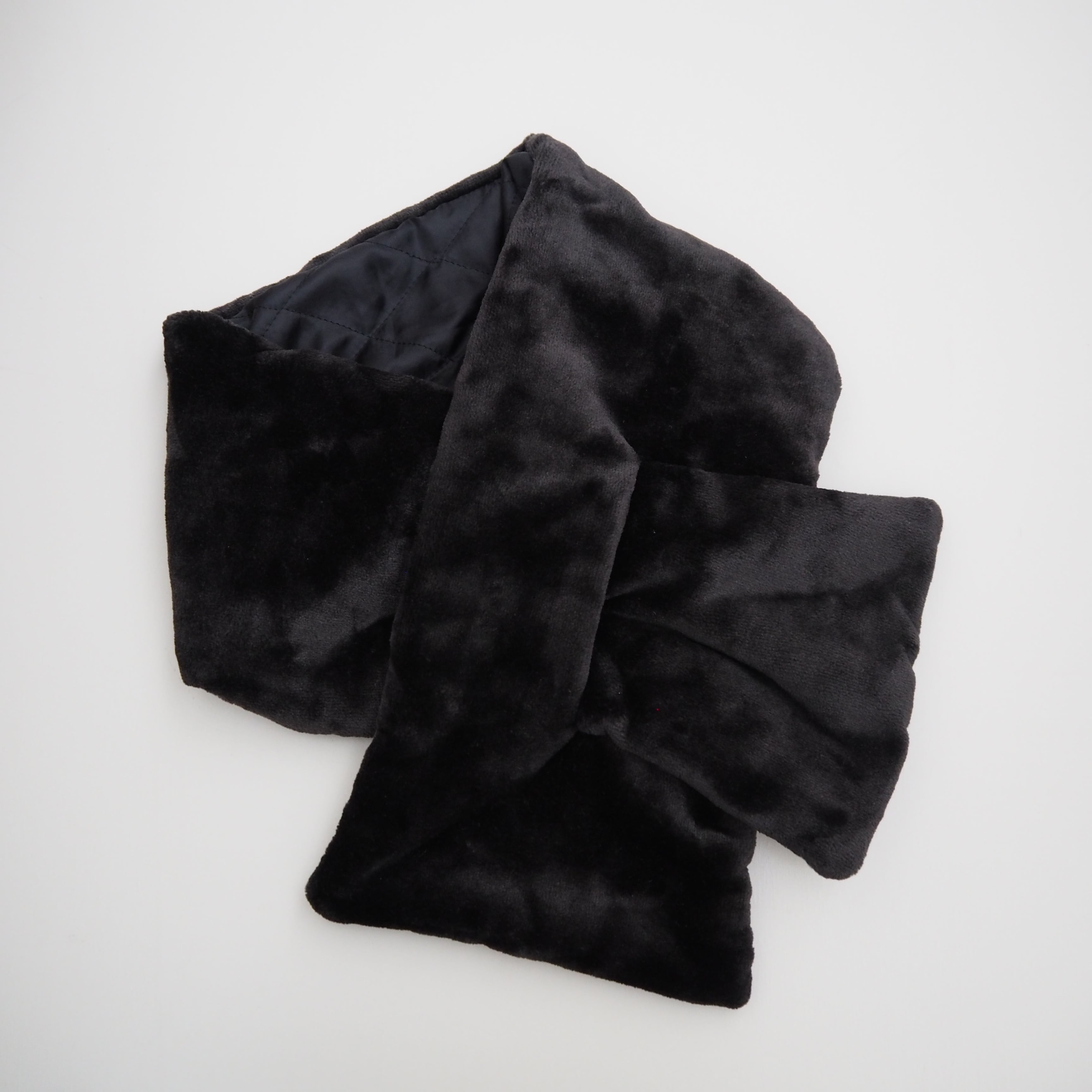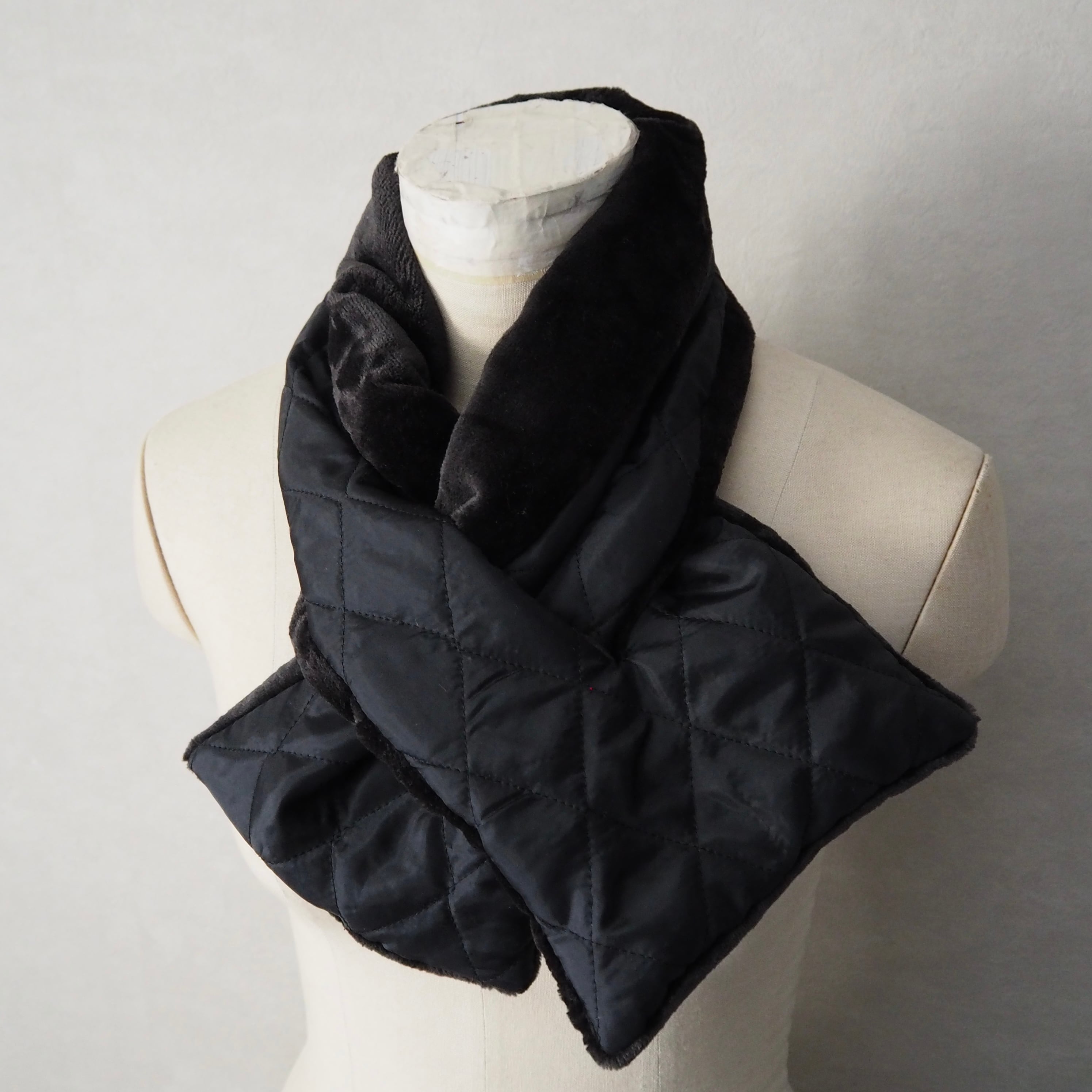 軽くてあたたかいキルティングダウンと、肌触りの良いボア生地のリバーシブルマフラーです。