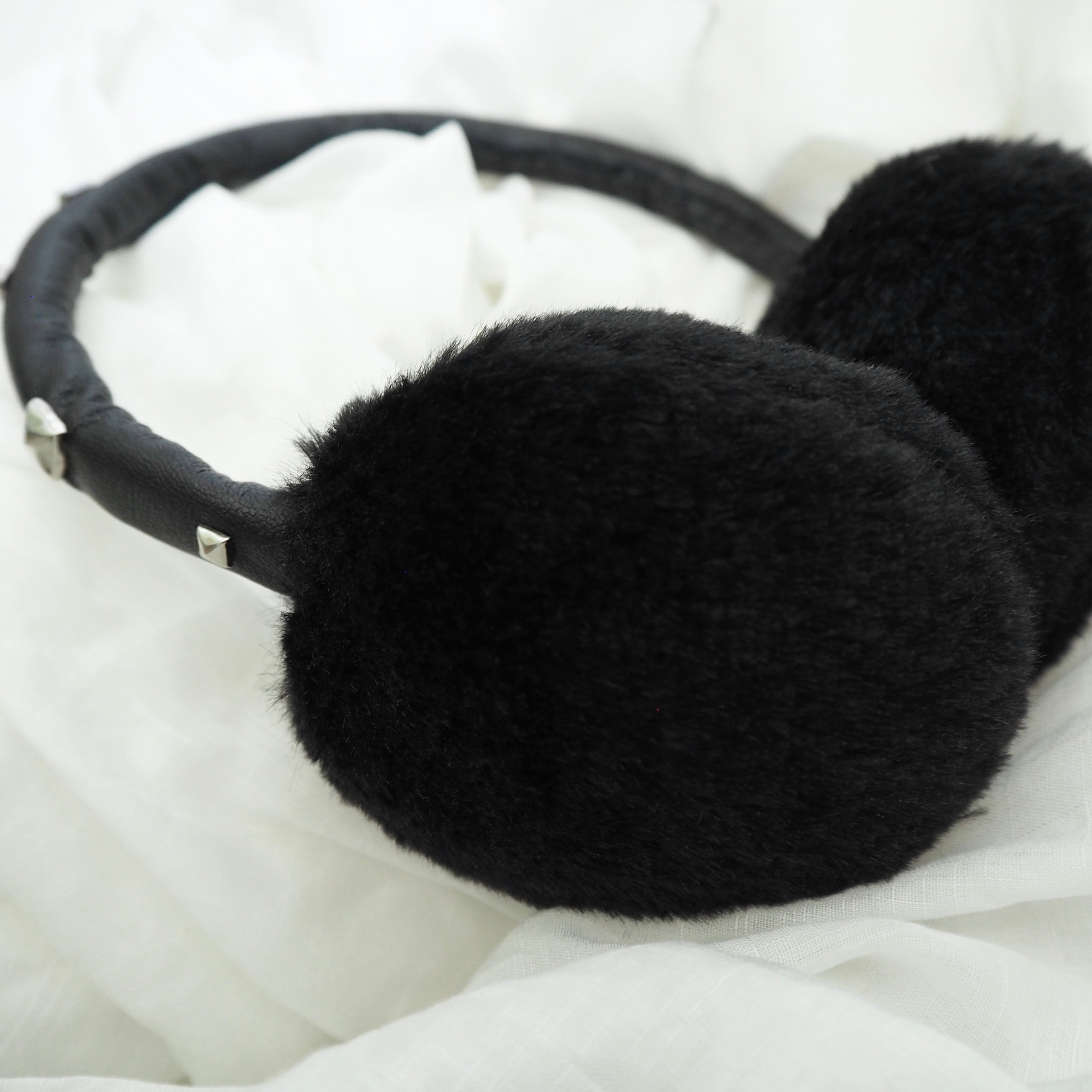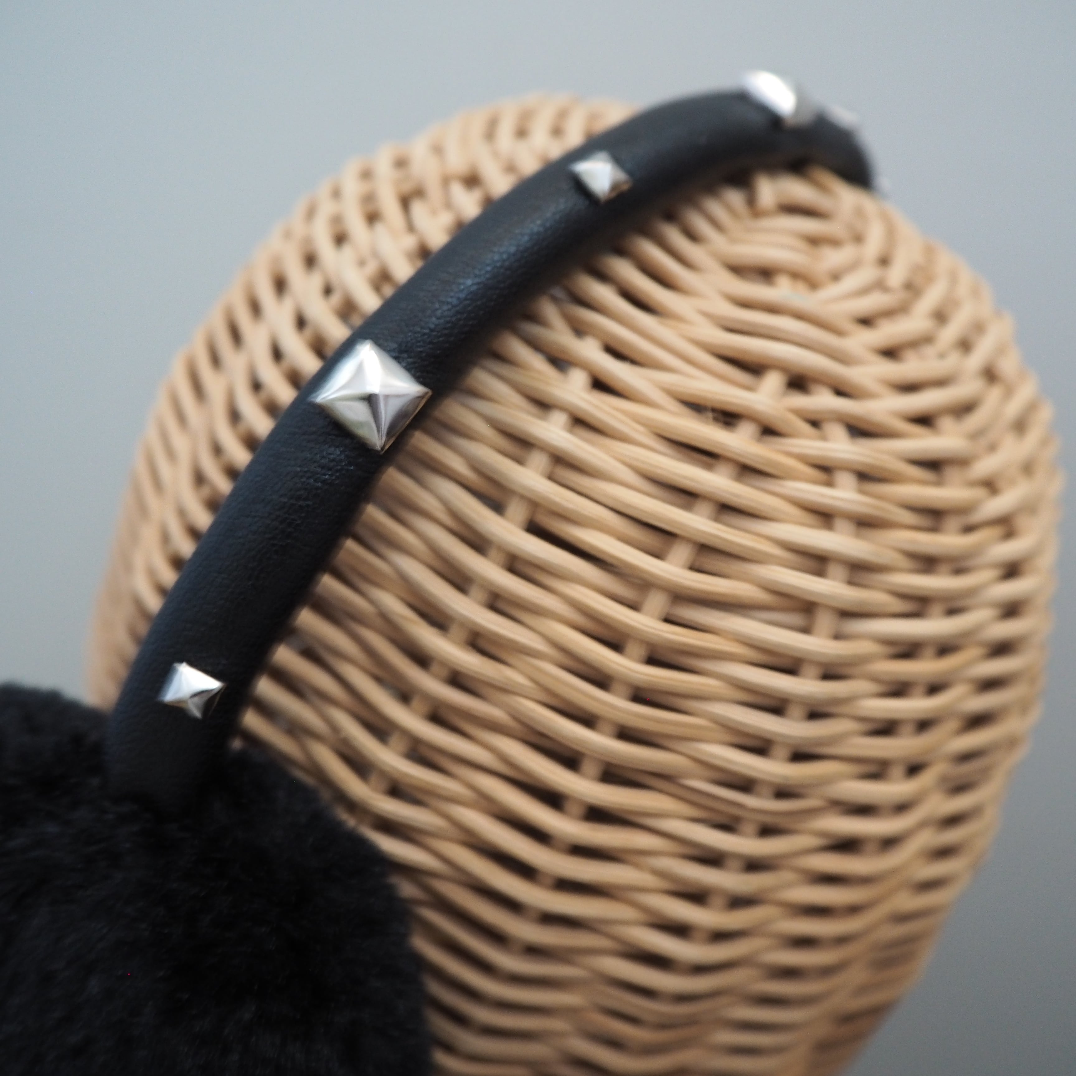 フワフワのエコファー素材の耳当てと、柔らかいエコレザーにスタッズを装飾しました。