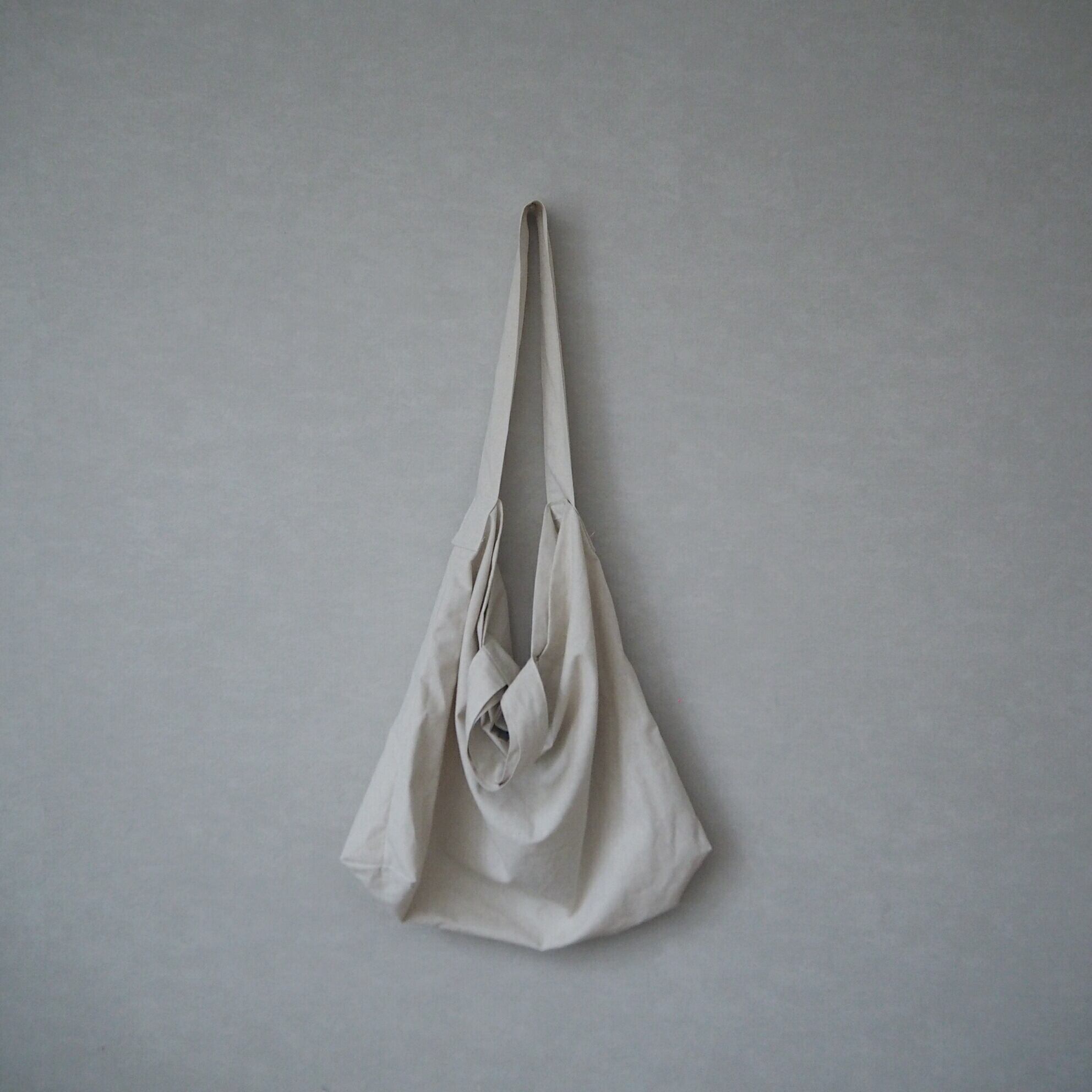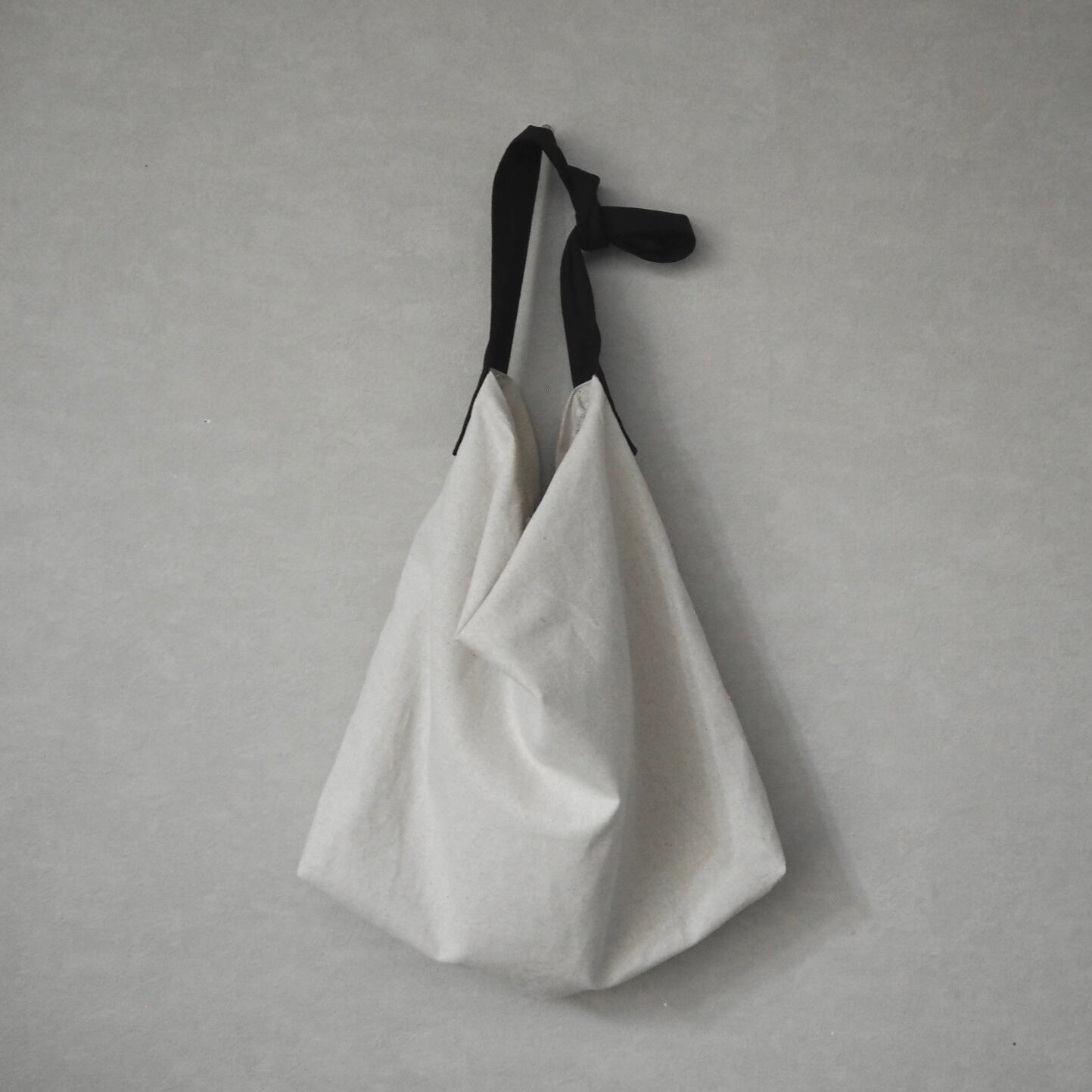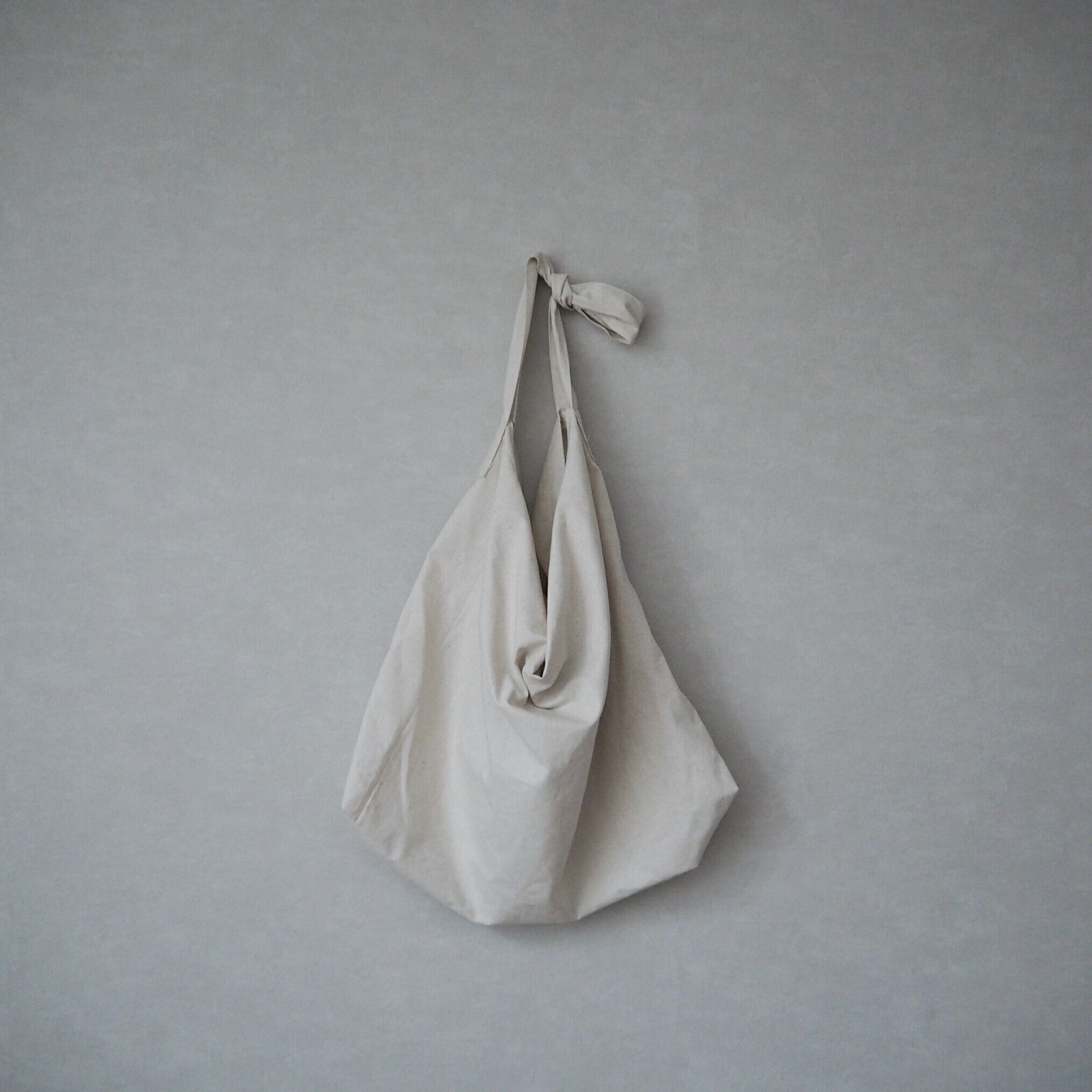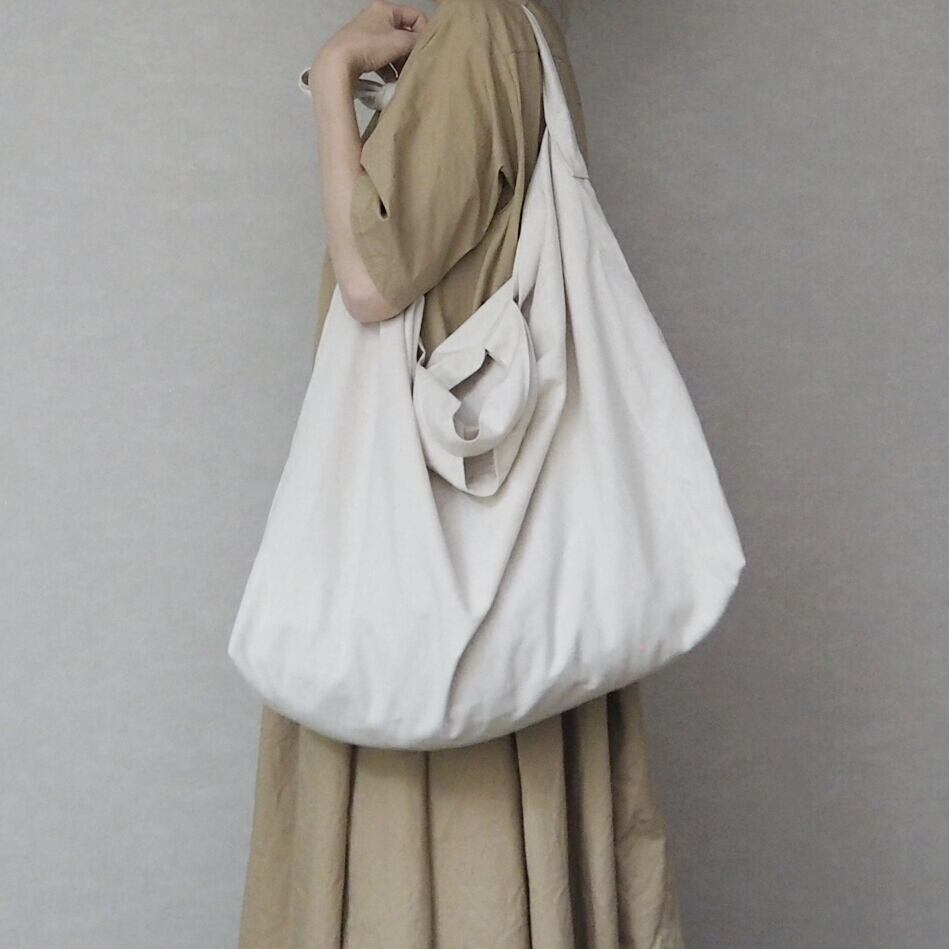 ショルダー紐は斜めがけできる長さで、結んで短めにしたり、中にしまえばシンプルな手提げにもなります。