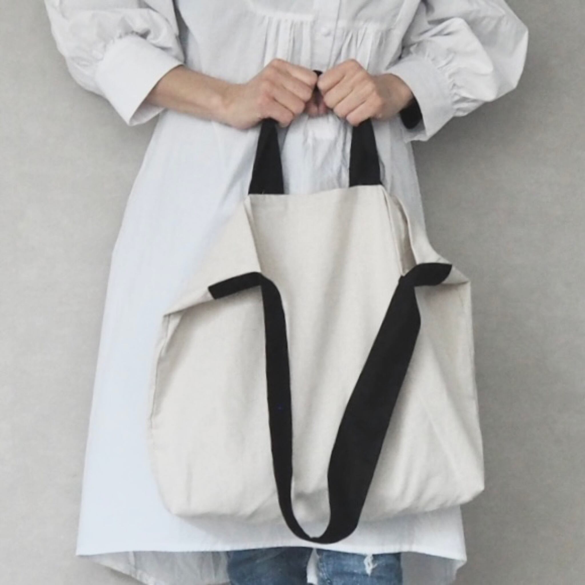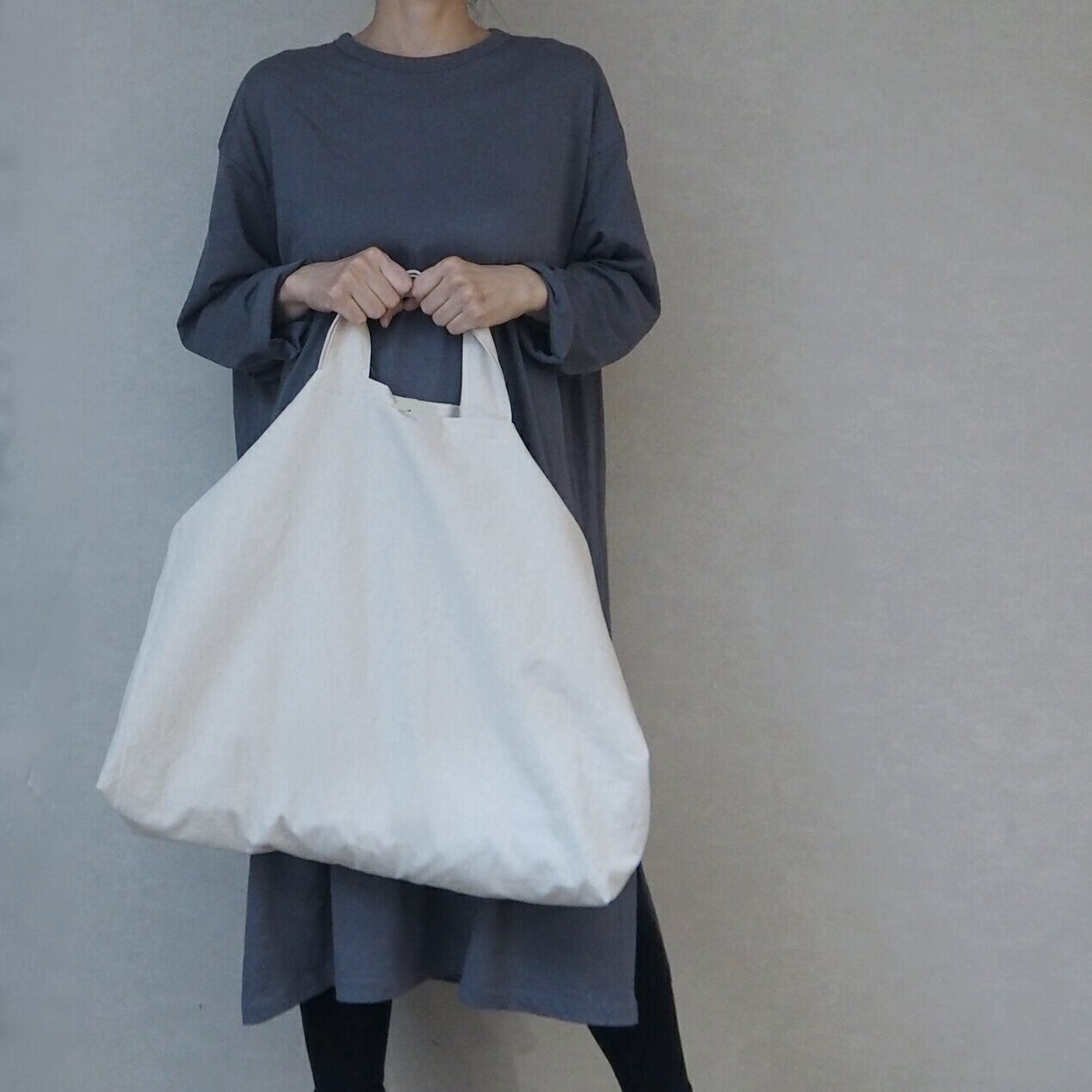 ご好評頂いておりますナチュラルな綿麻キャンバス生地で作ったざっくり大きなトートバッグの程よいサイズの少し小さめバージョンの登場です。