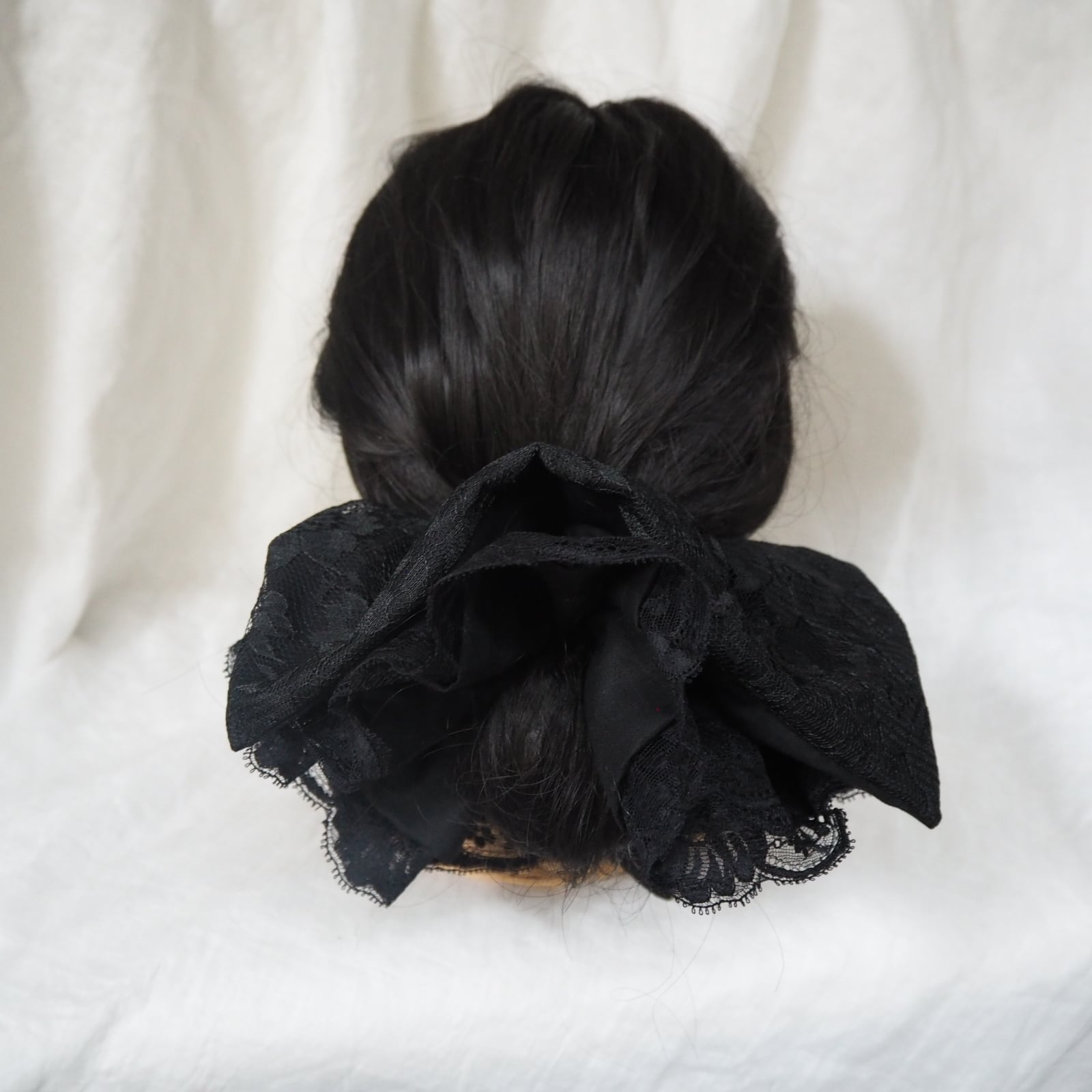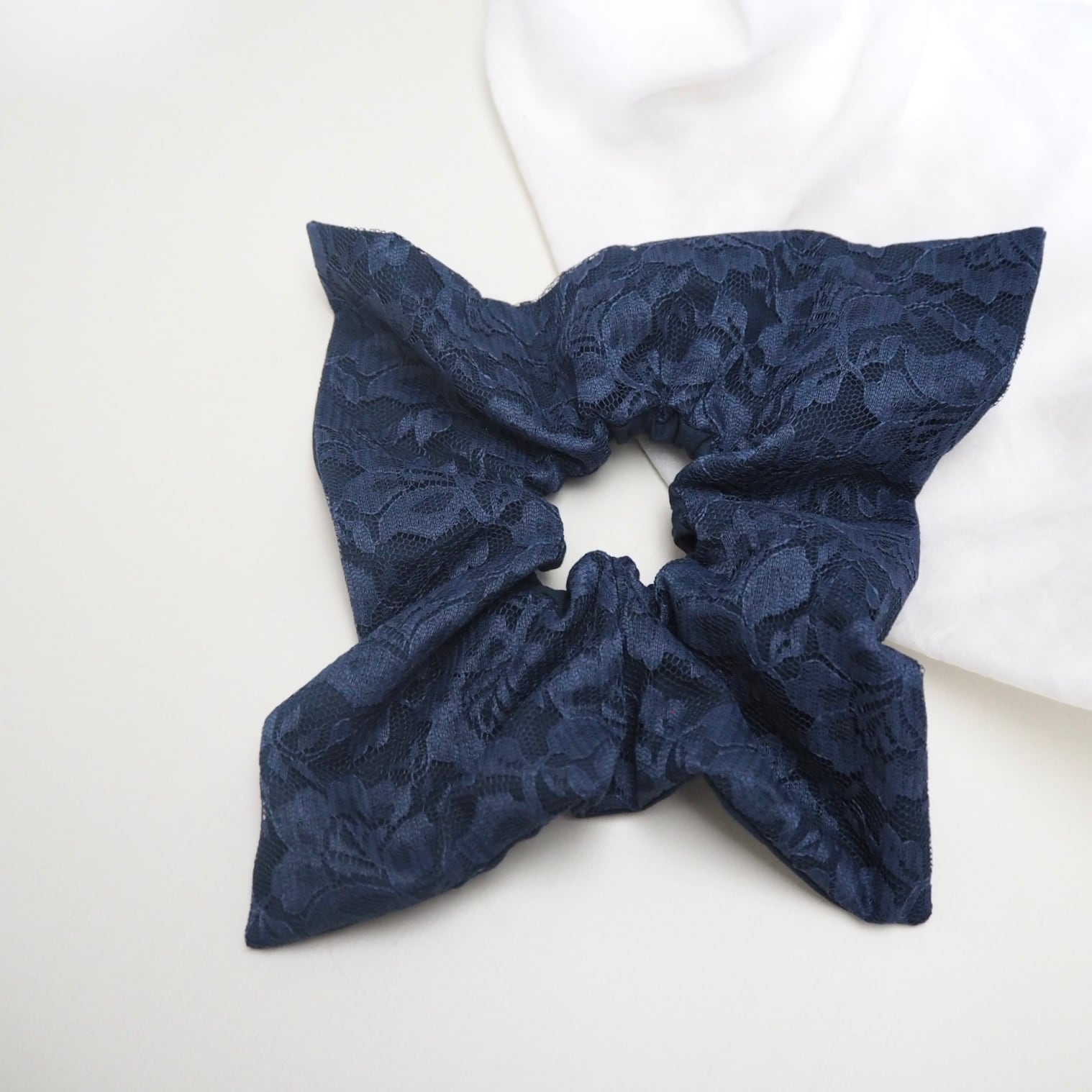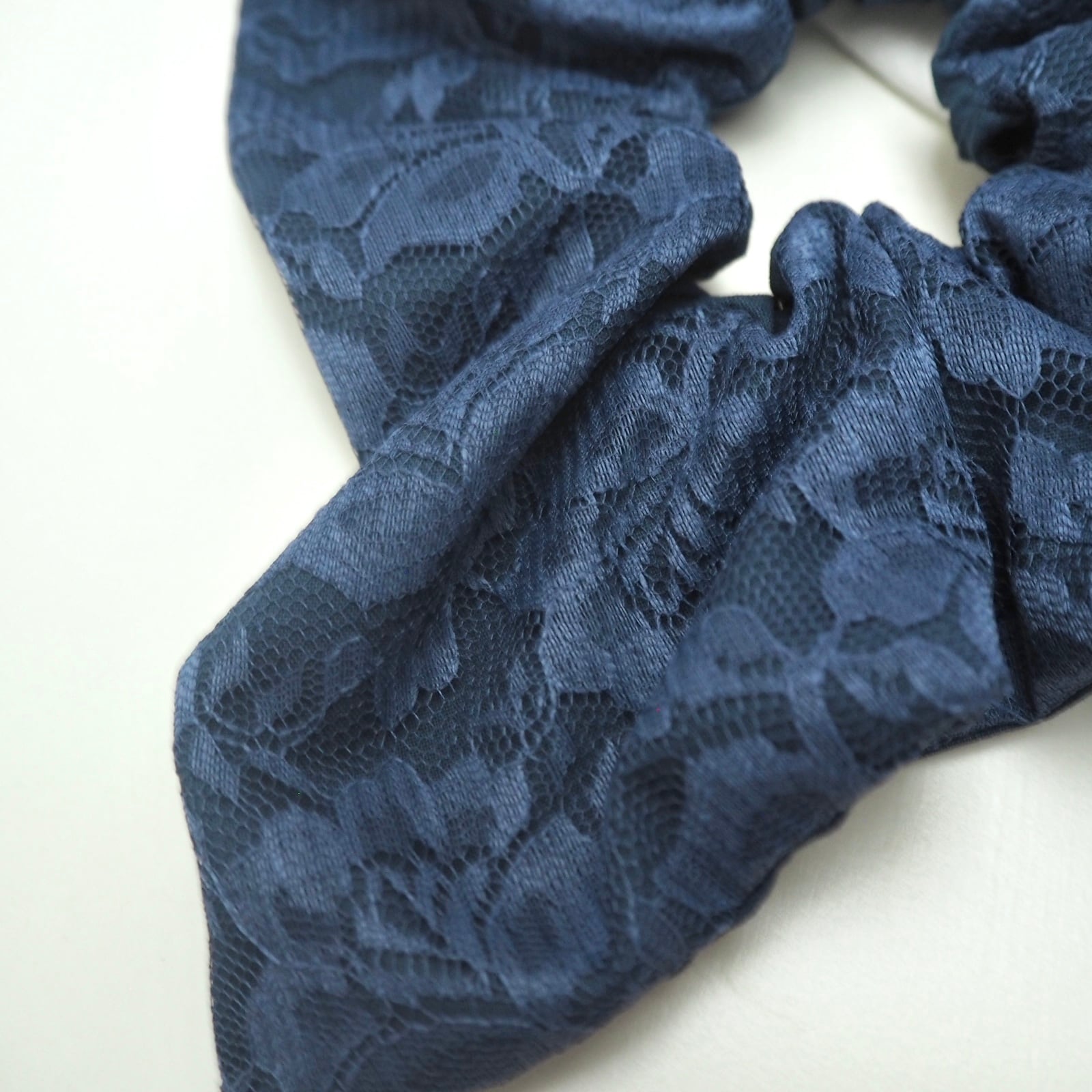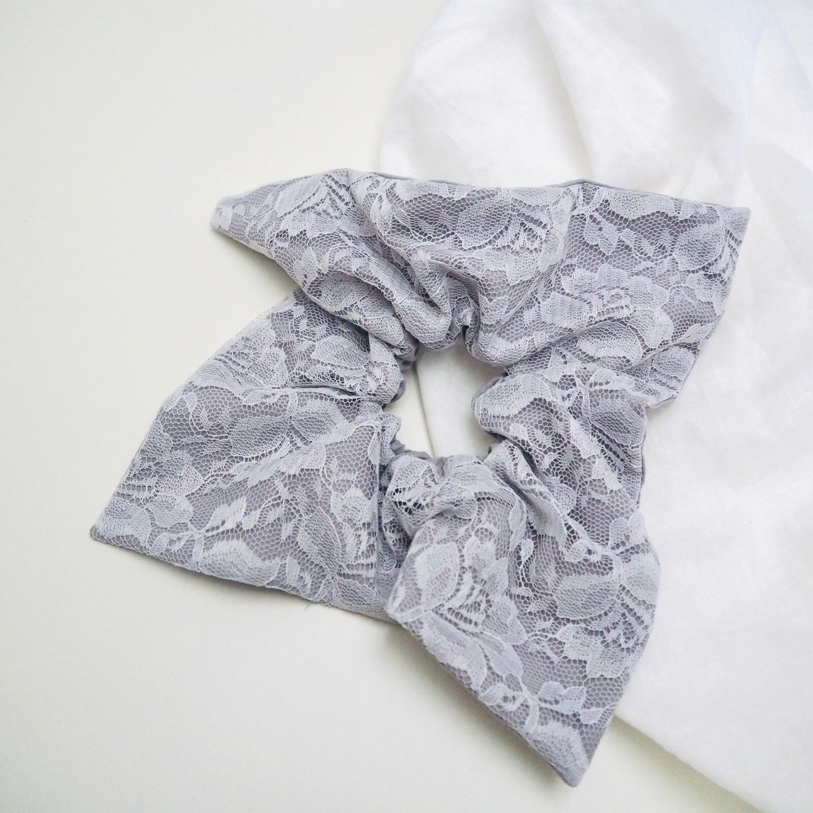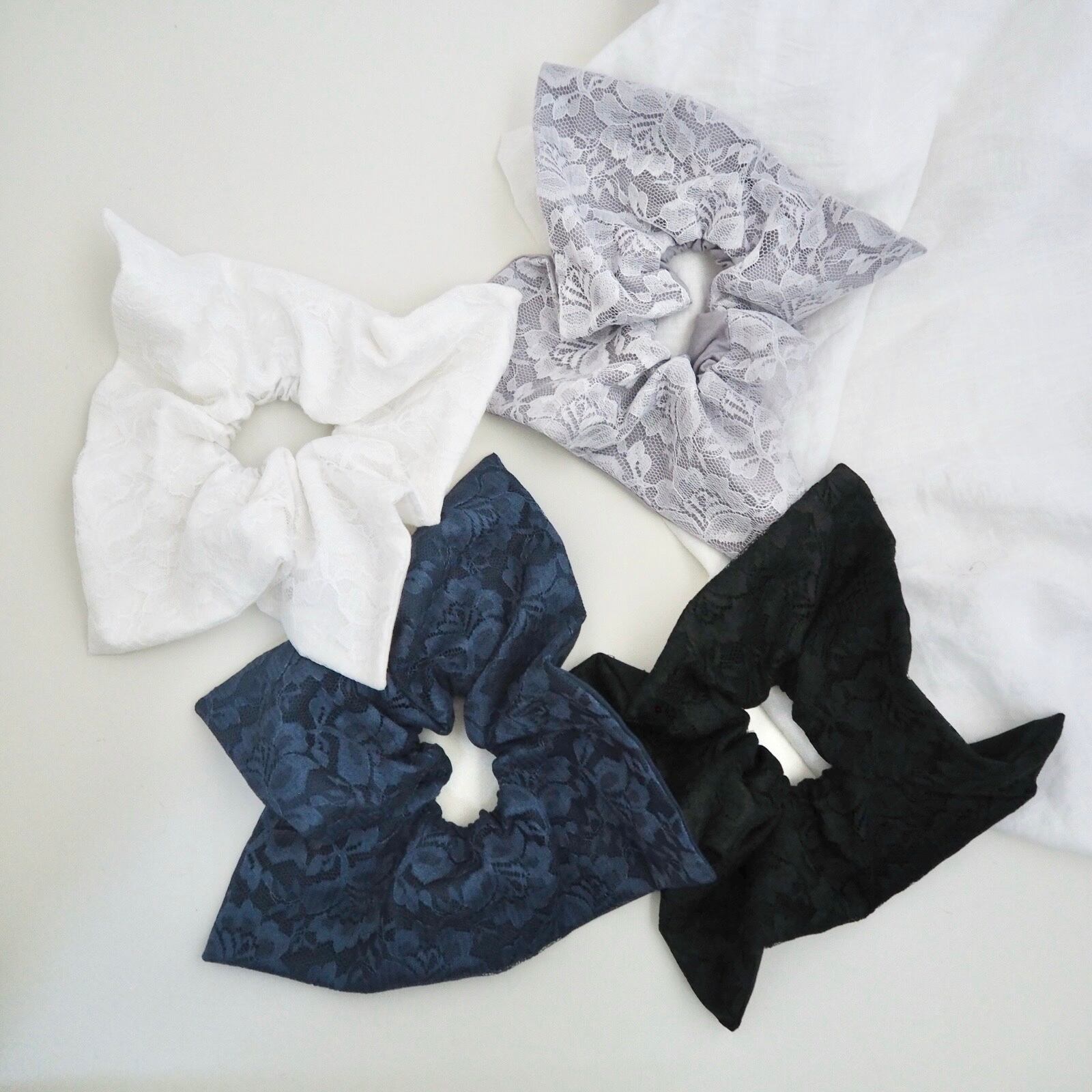 定番の丸いシュシュとは異なり、可愛さ控えめの少し落ち着いた雰囲気を演出できる正方形のシュシュです。