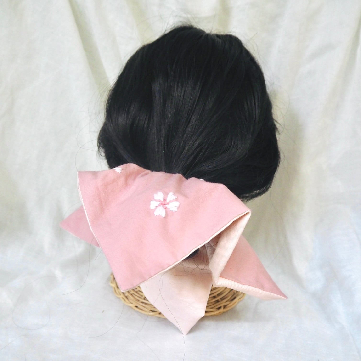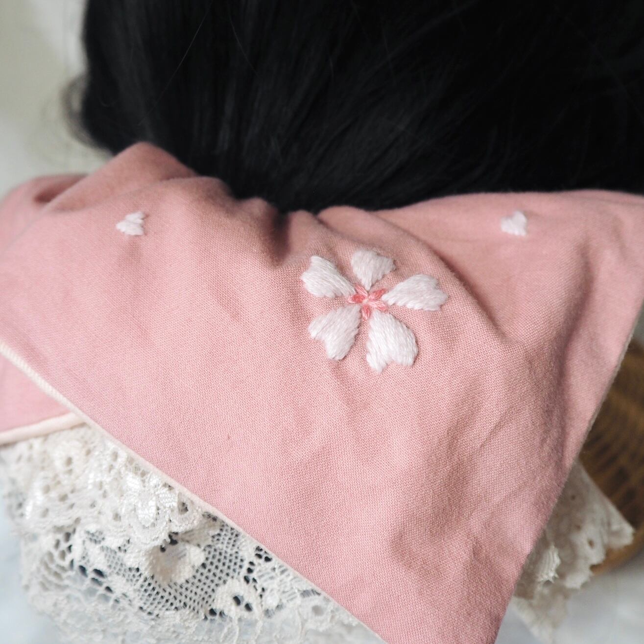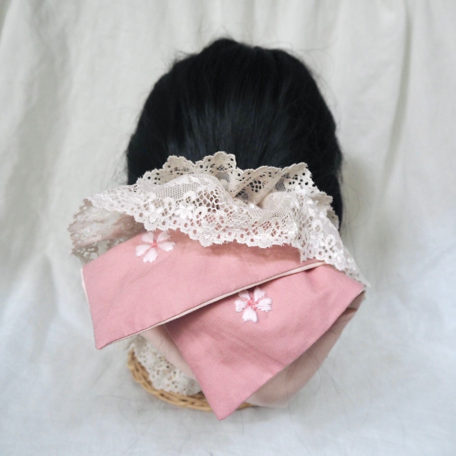 同じ桜刺繍のヘアターバンもお作りしております。