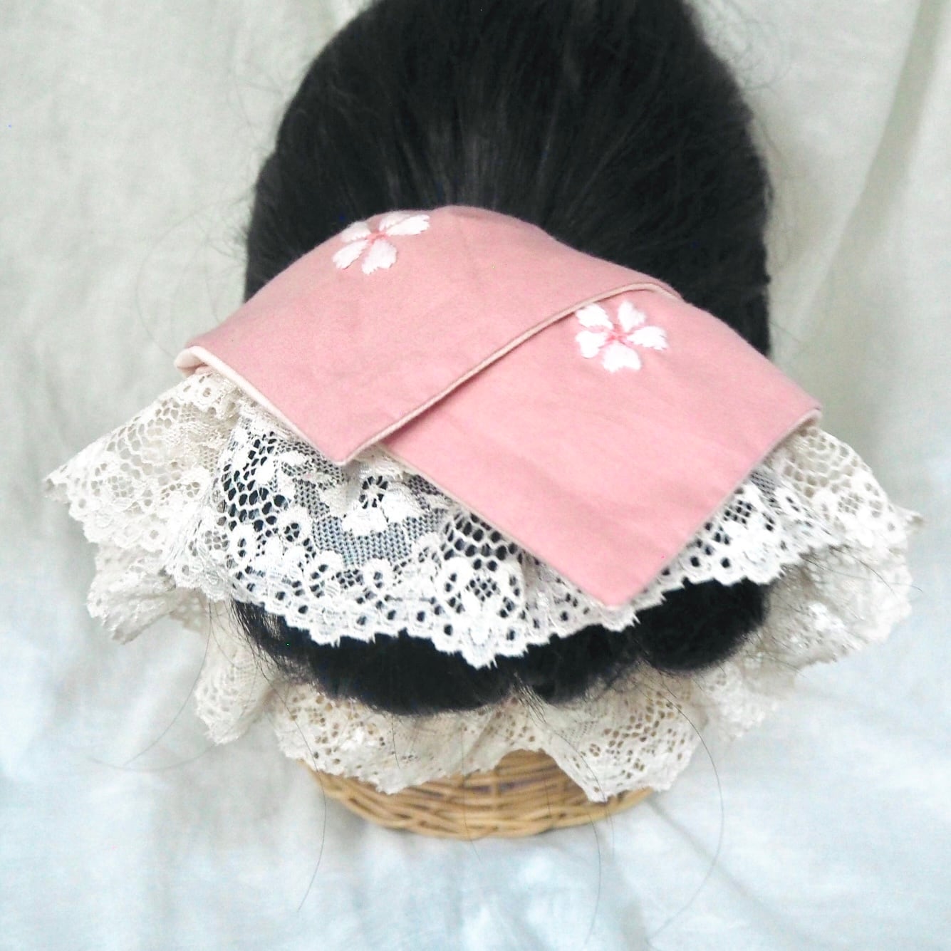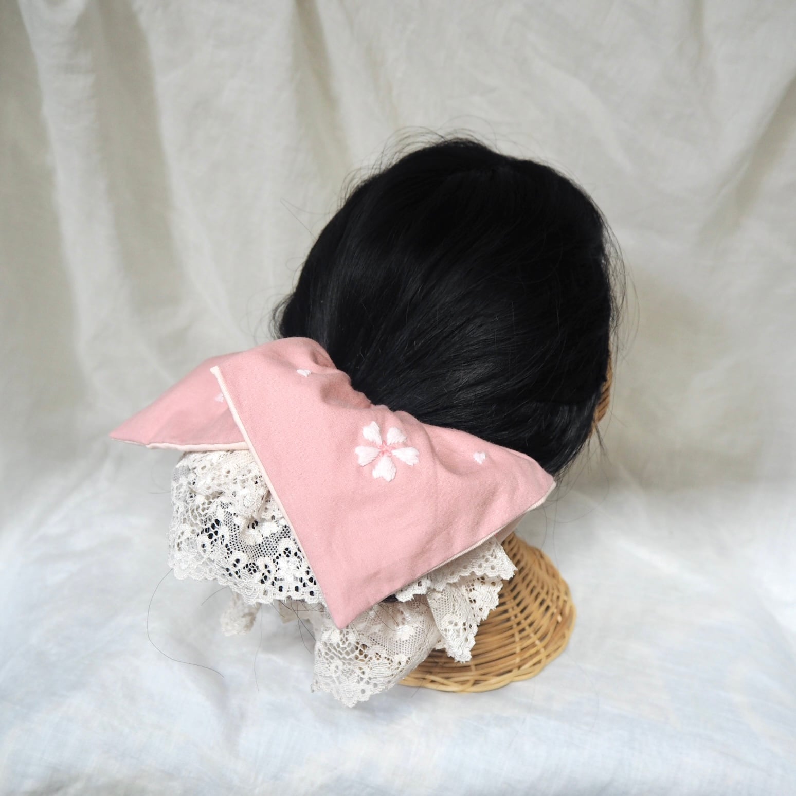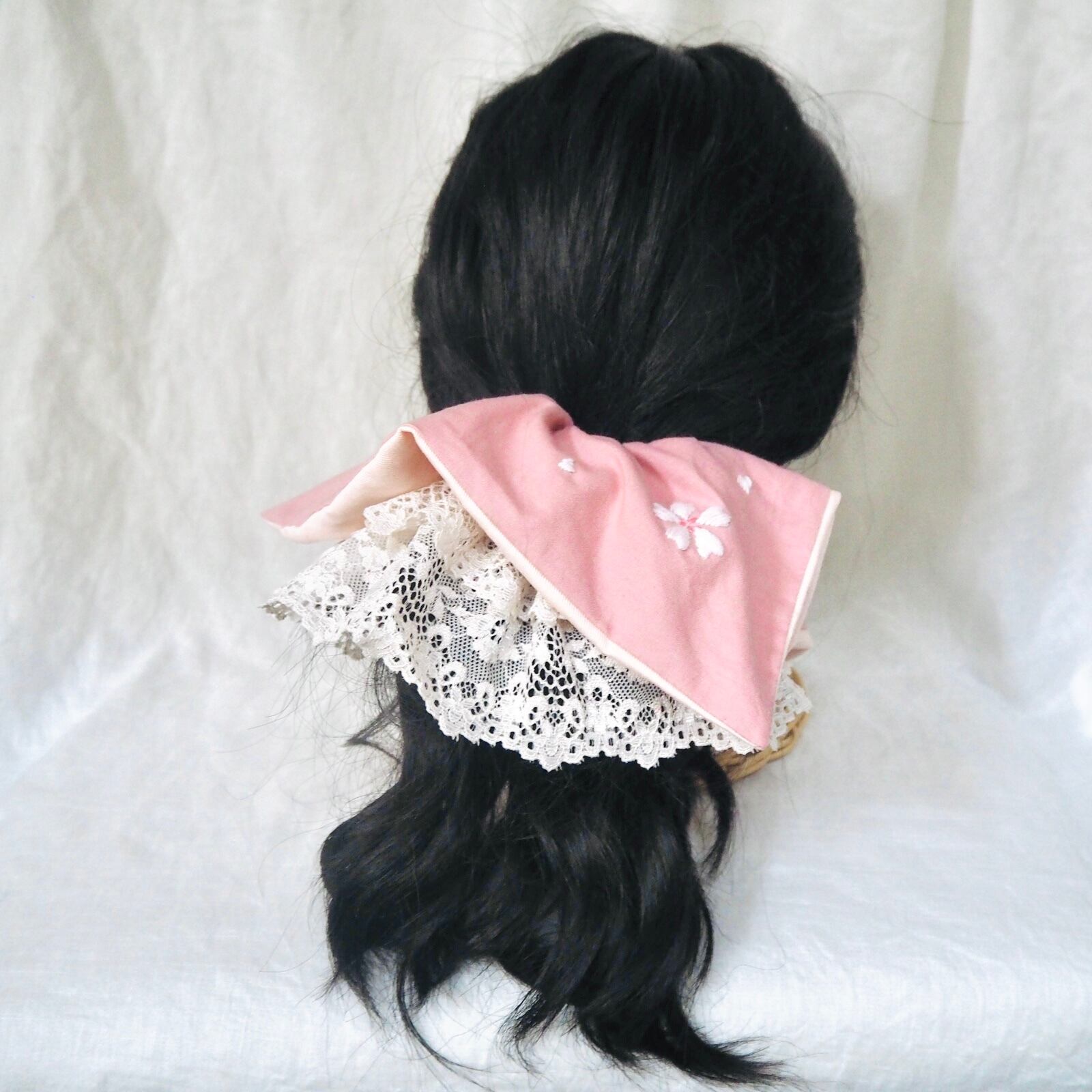 同じ桜刺繍のヘアターバンもお作りしております。
