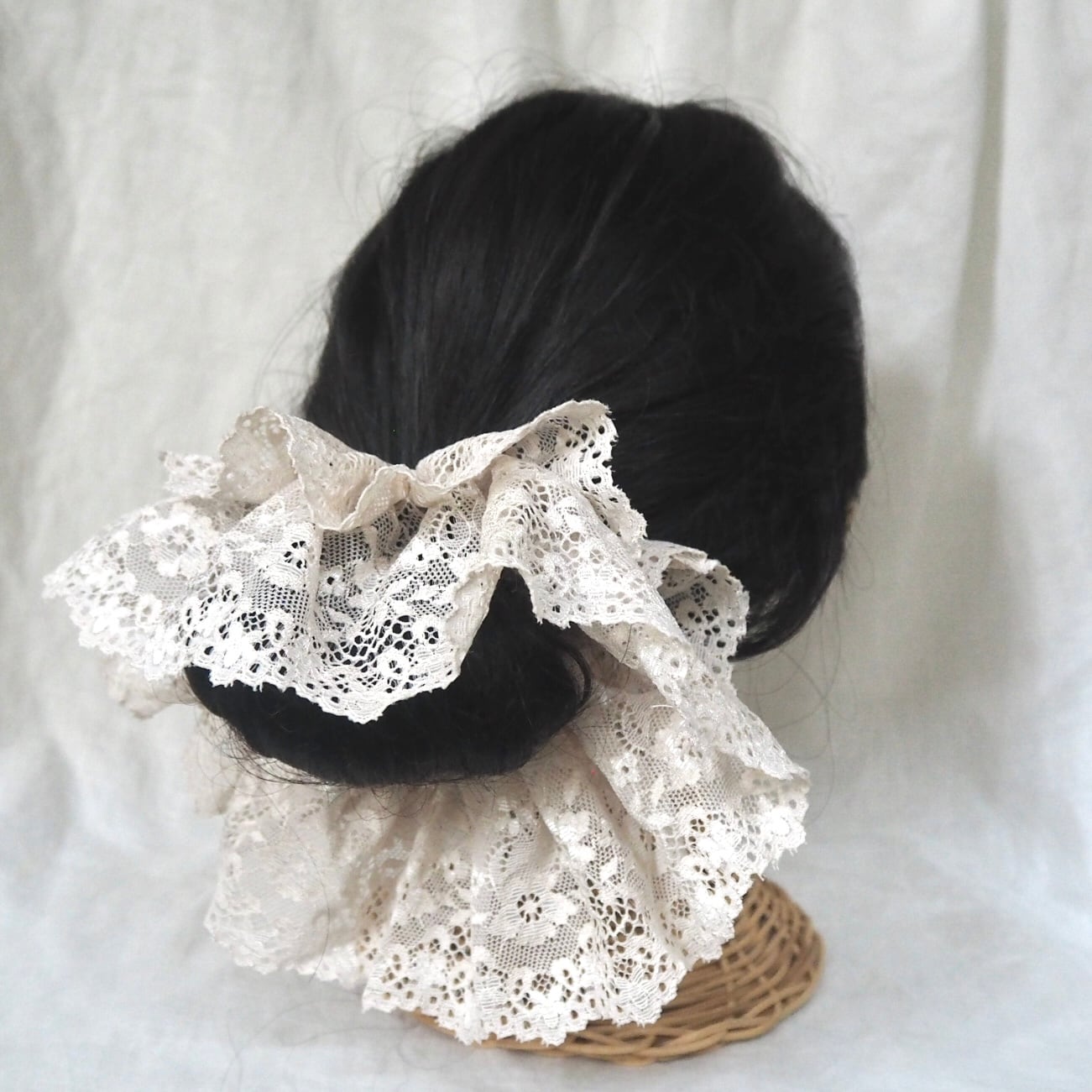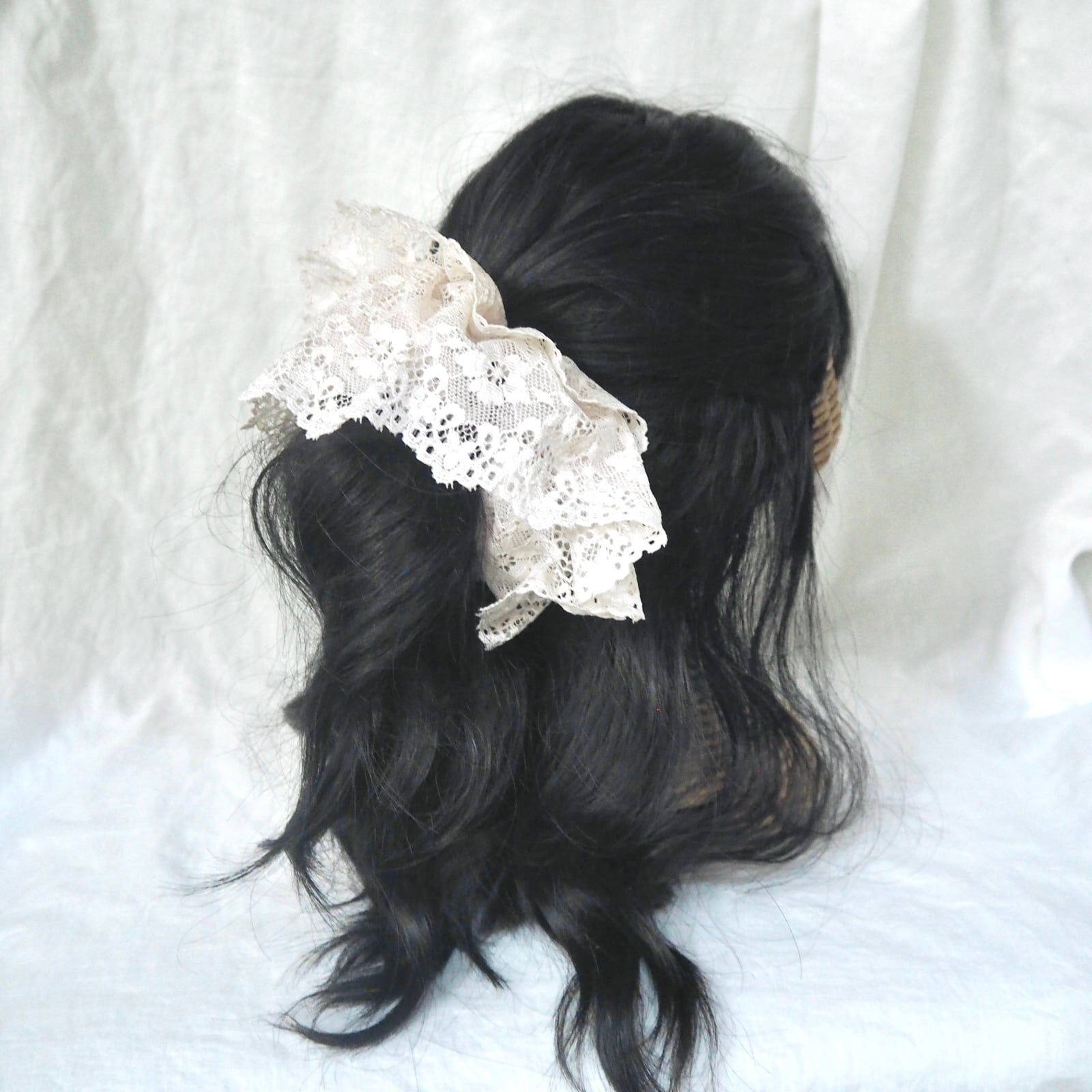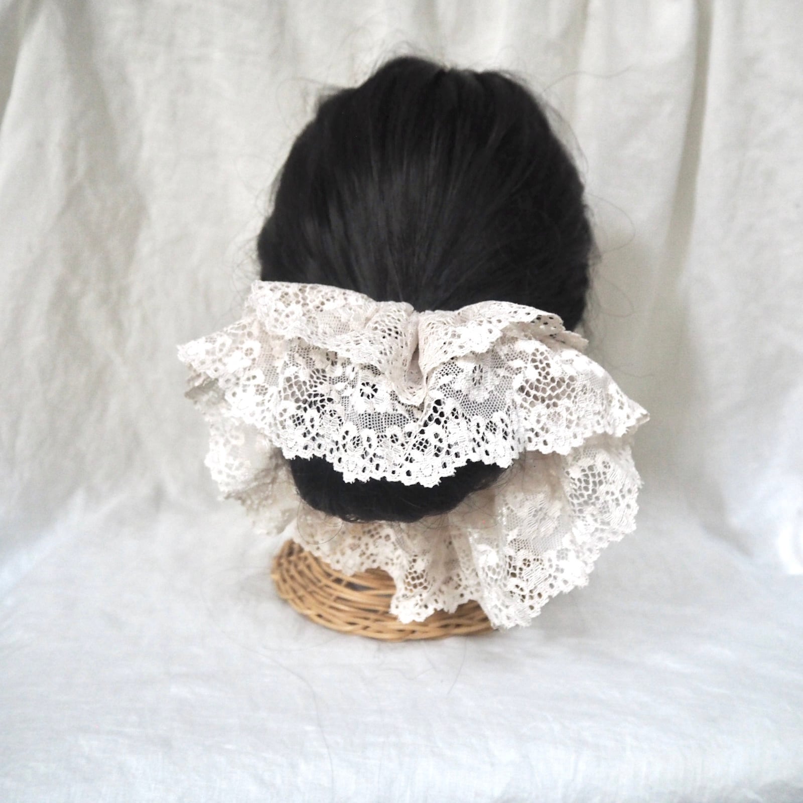 こちらは春に着けて頂きたい落ち着いたピンクに薄ピンクの桜刺繍が可愛いシュシュと、総レースのライトベージュのシュシュ2枚セットです。