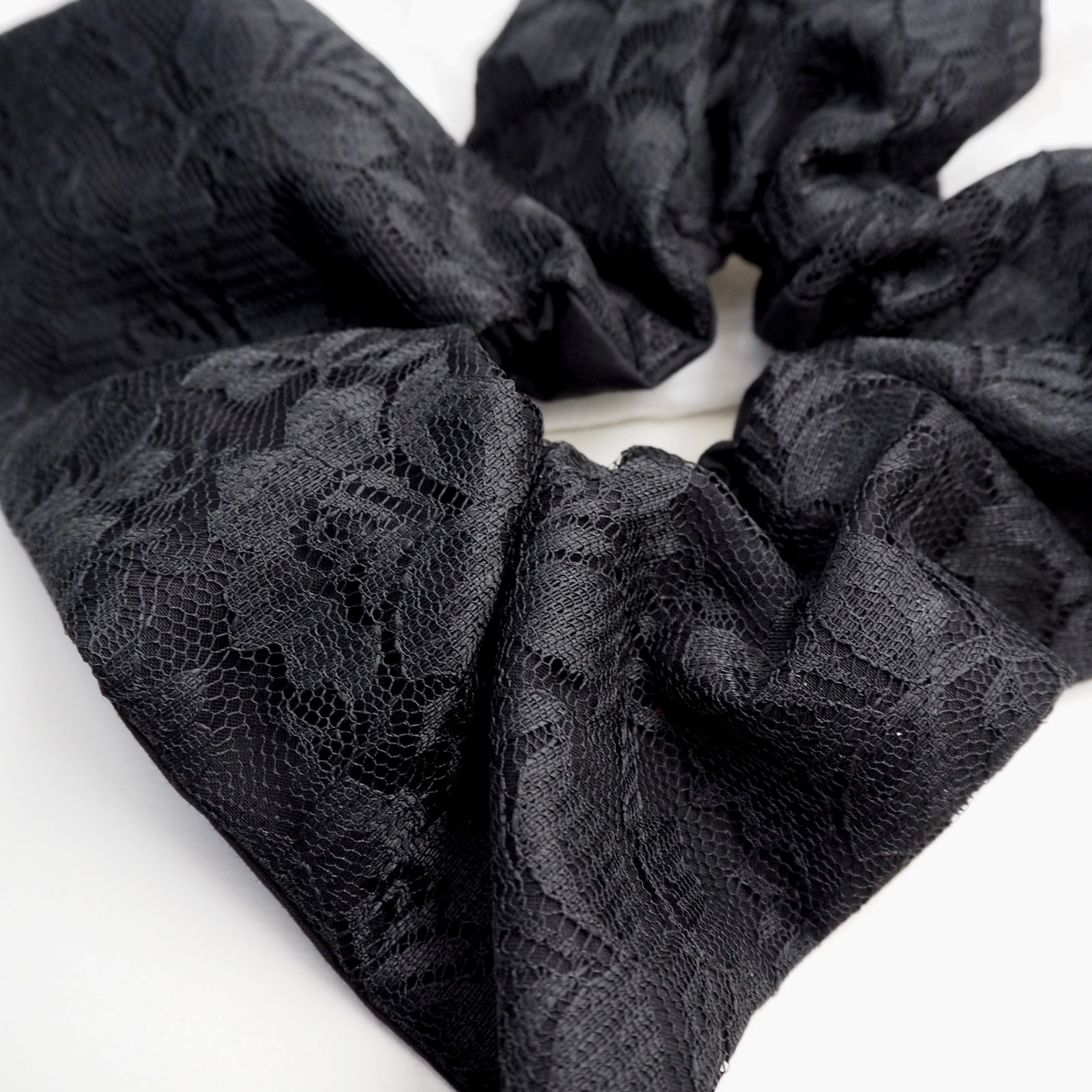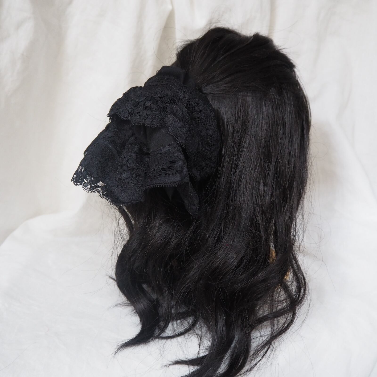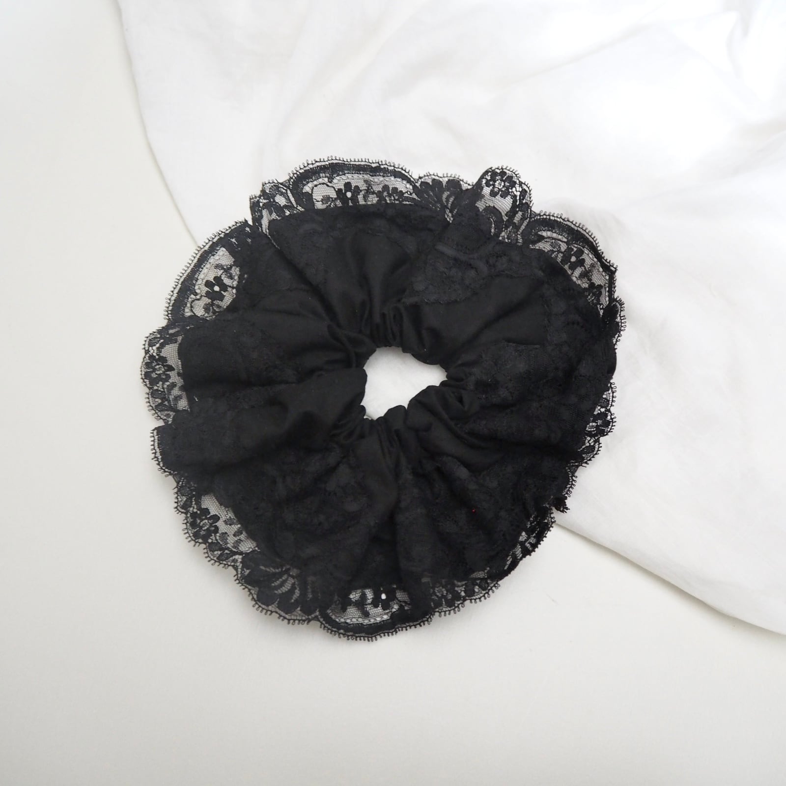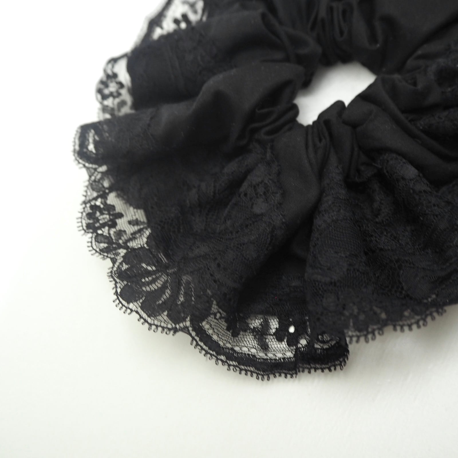 こちらは、黒のレースのシュシュに更に動きが出る様にふんわり丸型のレースのシュシュをセットにしました。