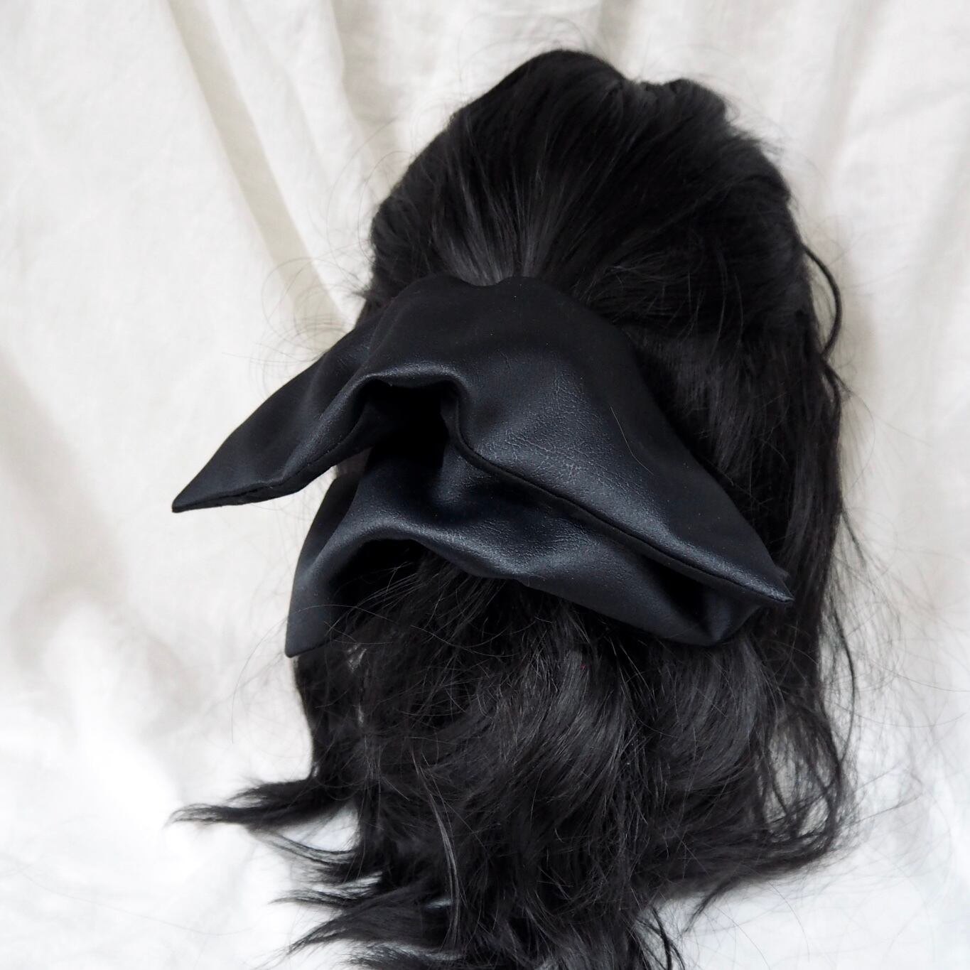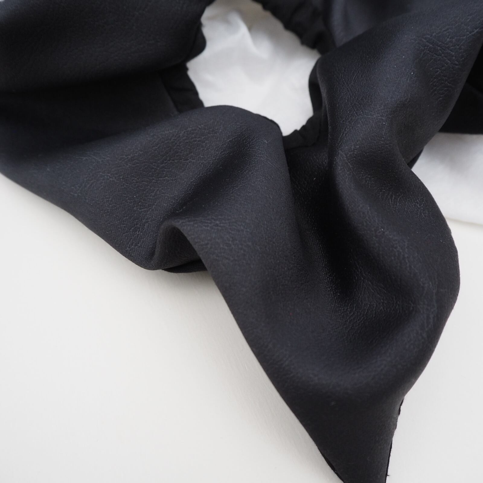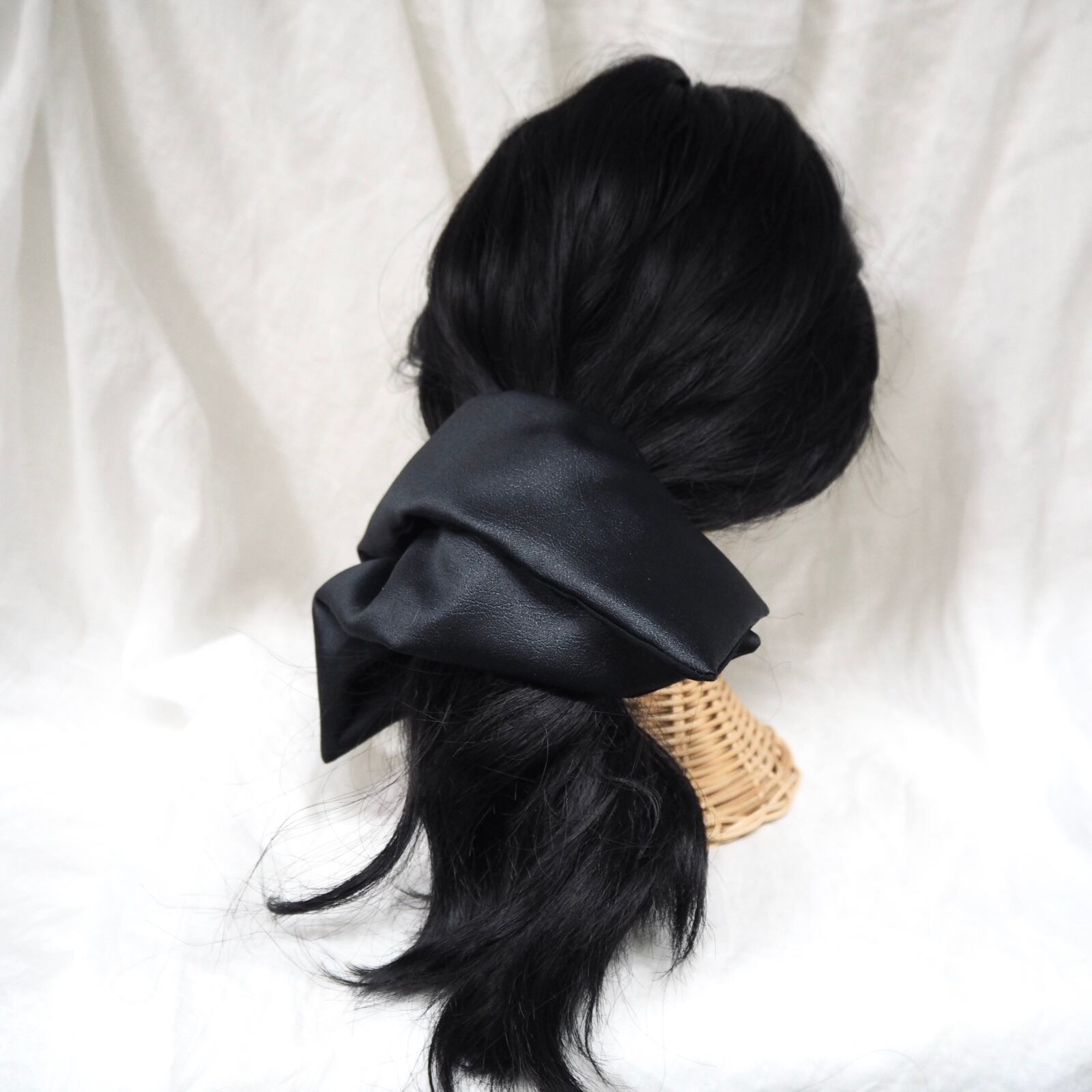 定番の丸いシュシュとは異なり、可愛さ控えめの少し落ち着いた雰囲気を演出できる正方形のシュシュです。