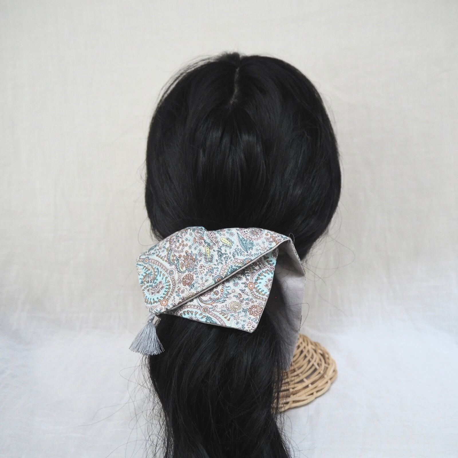 着けるだけでさりげなく個性的なこなれ感と、立体的でおしゃれなヘアアレンジに仕上がるスクエアシュシュは着け方も様々。