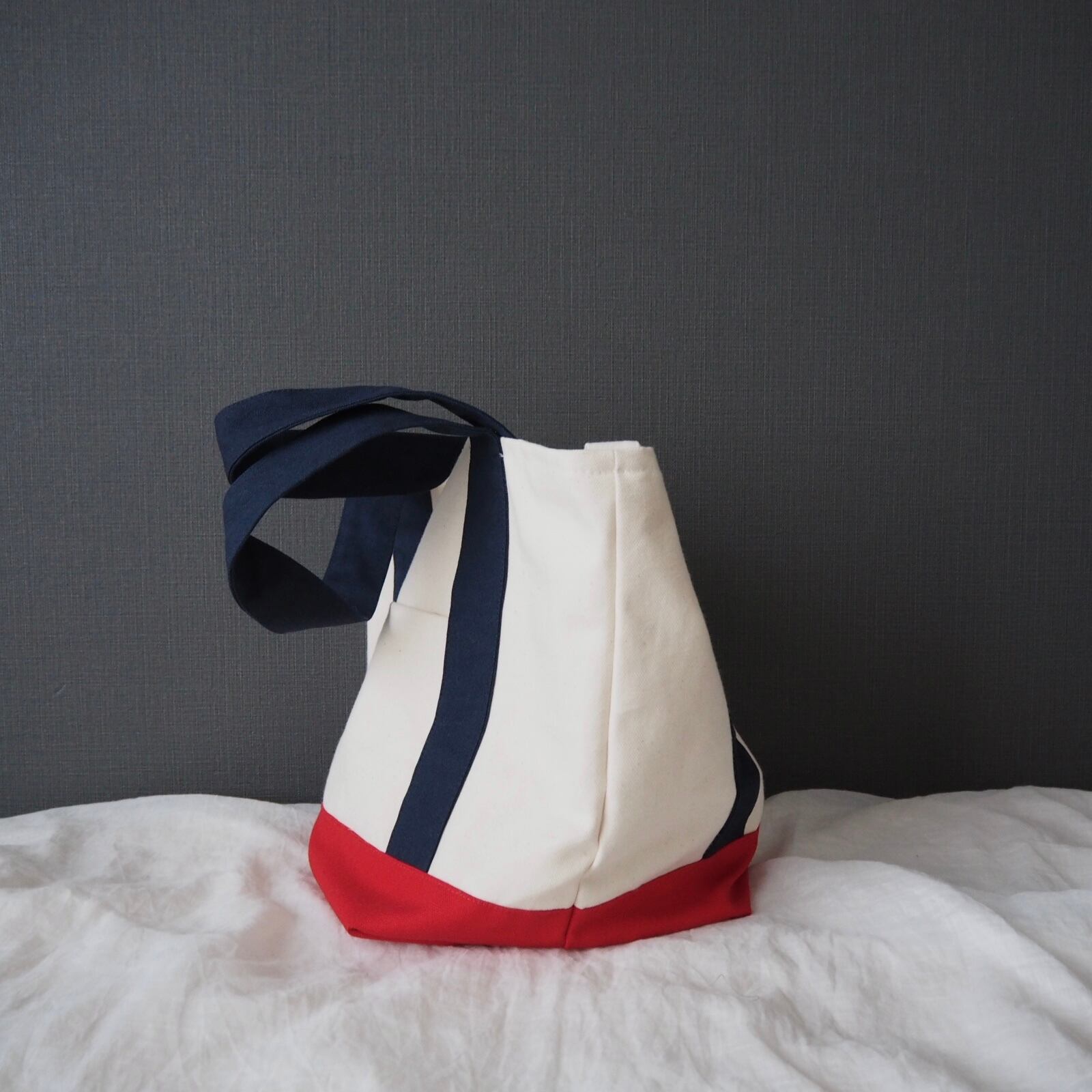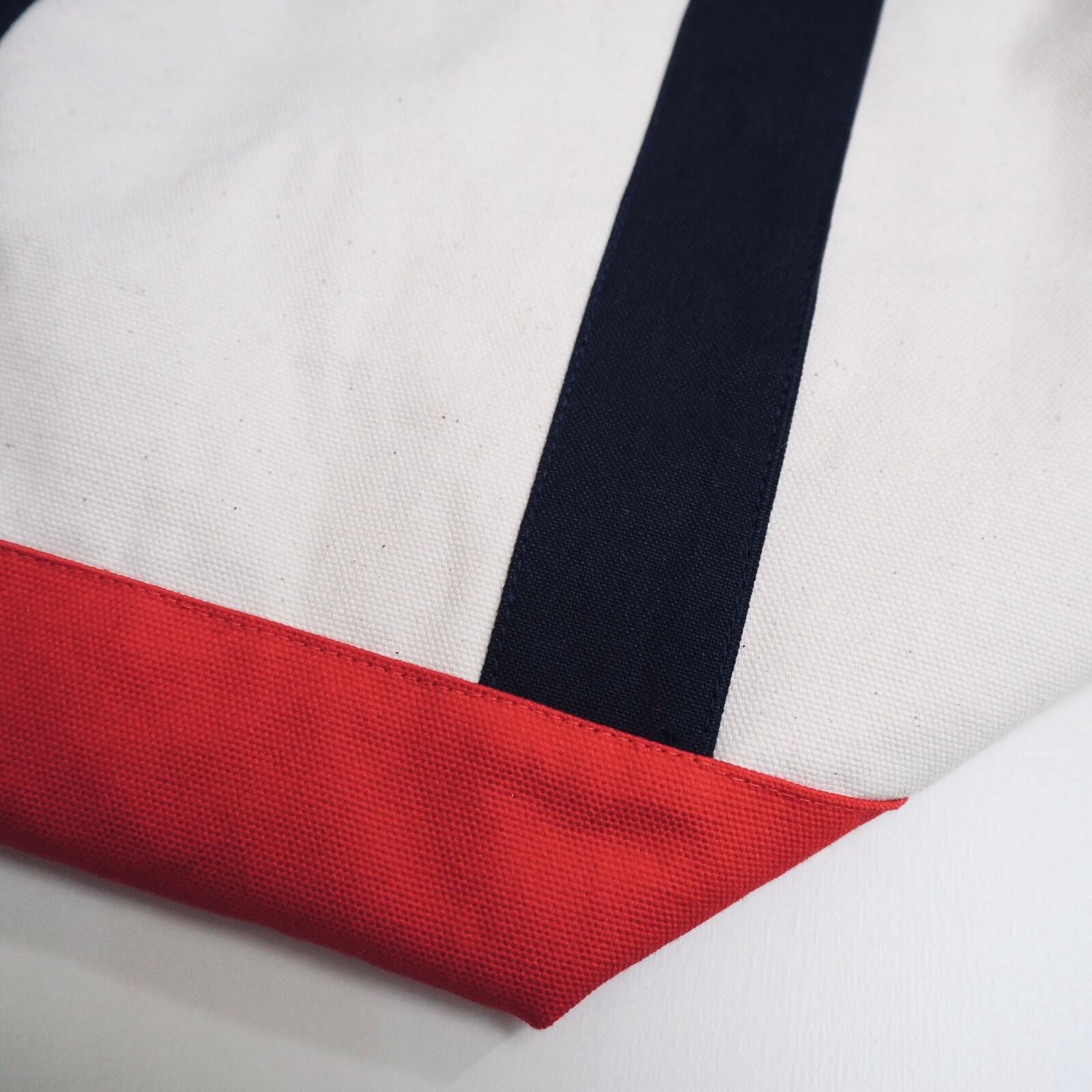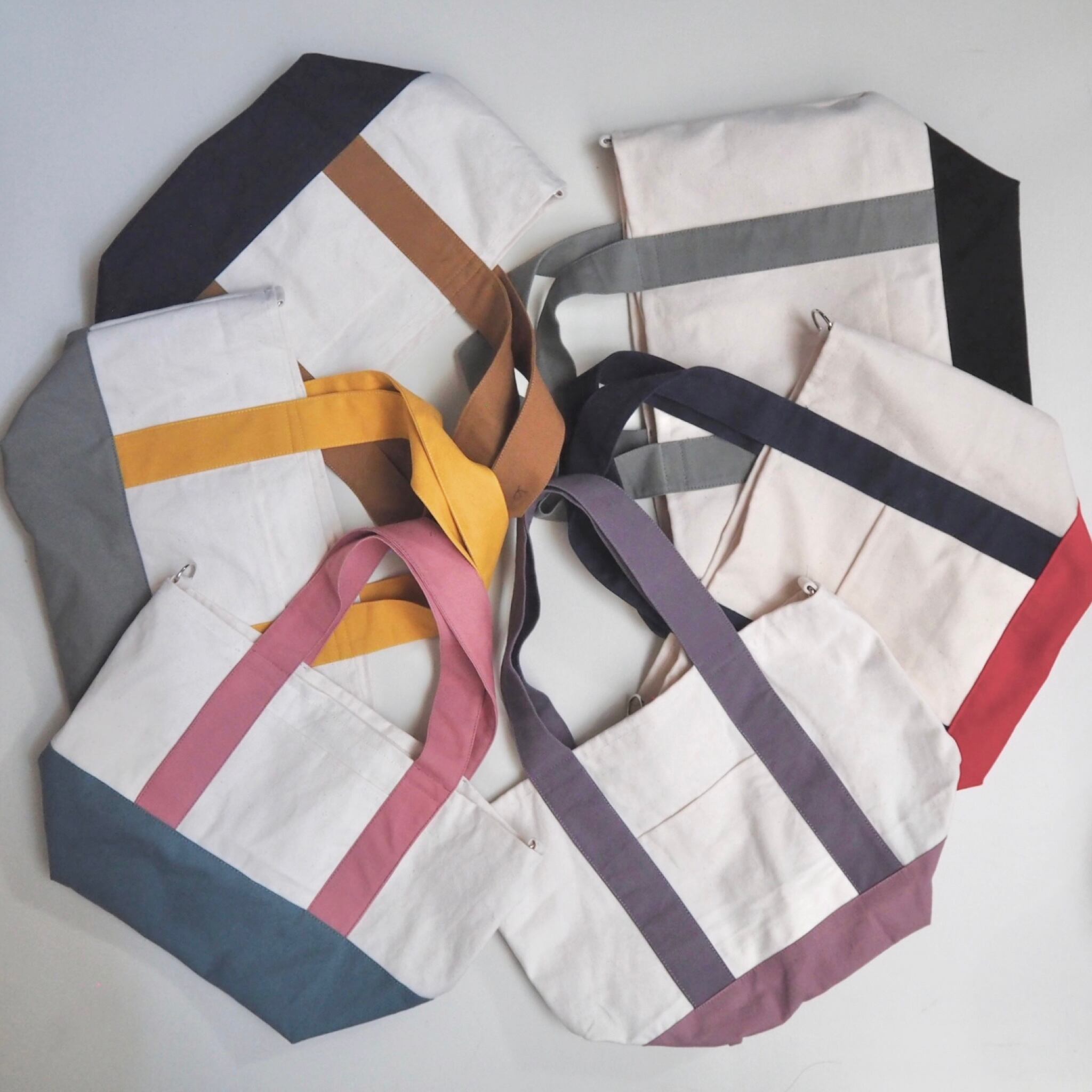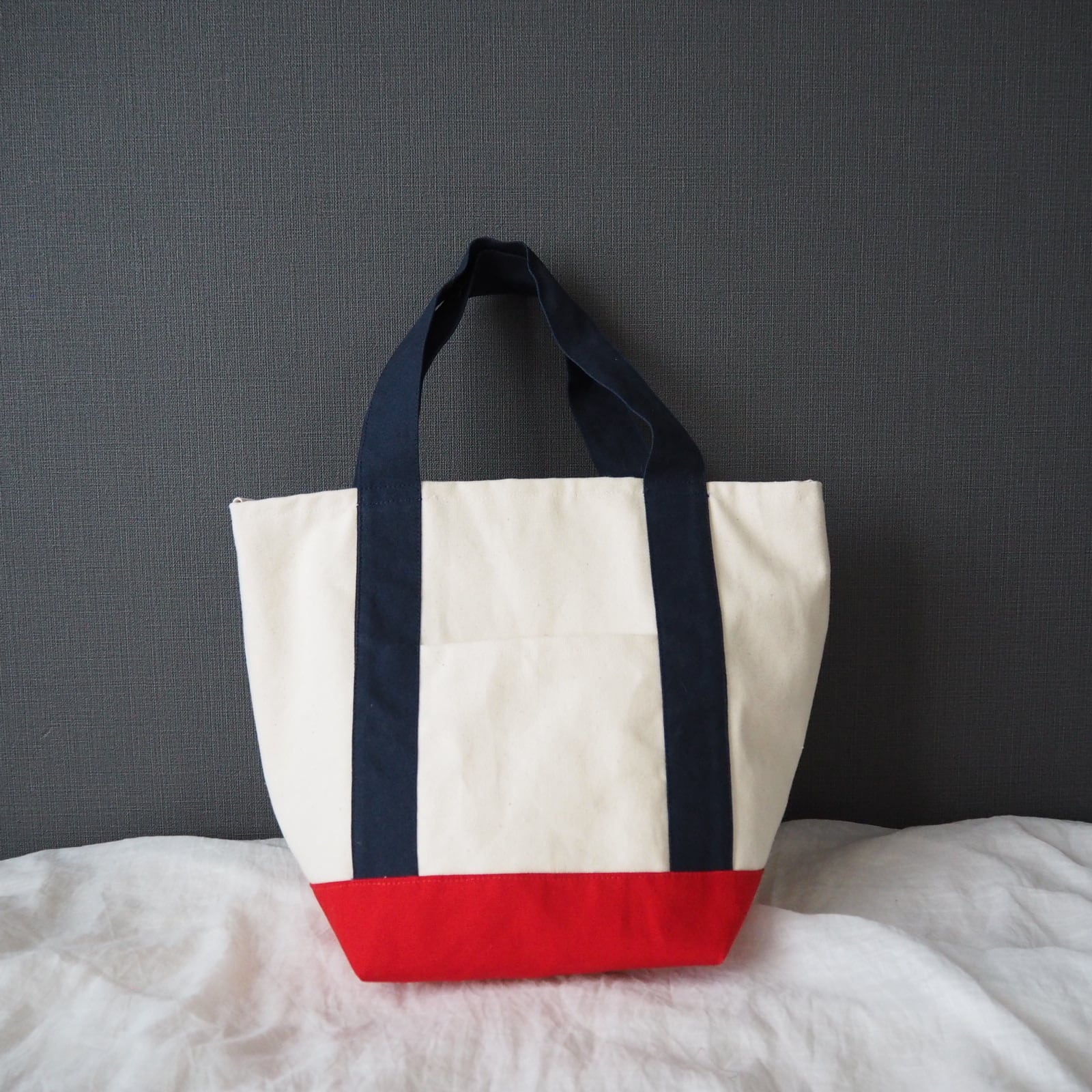 カスタムできる トートバッグ ☆ ほどよい厚みの9.5号帆布 スクエアボトム トリコロールカラー