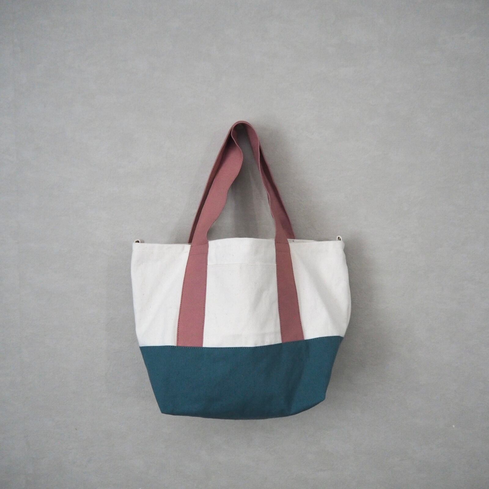 カスタムできる トートバッグ ☆ ヴィンテージ帆布 ショート ブルーグリーン × ピンク