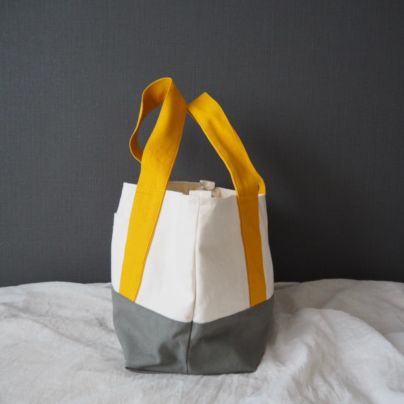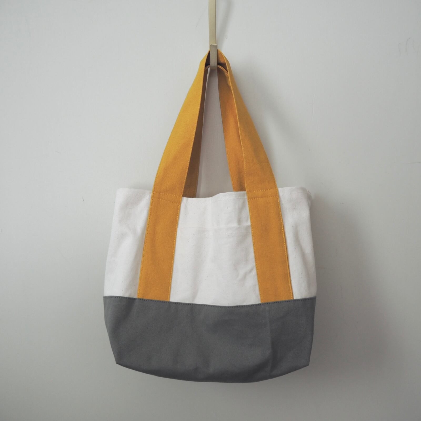 カスタムできる トートバッグ ☆ ヴィンテージ帆布 ショート グレー × イエロー