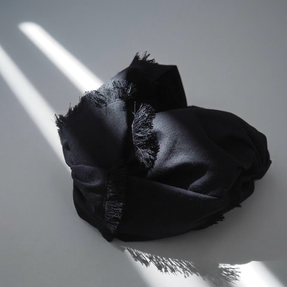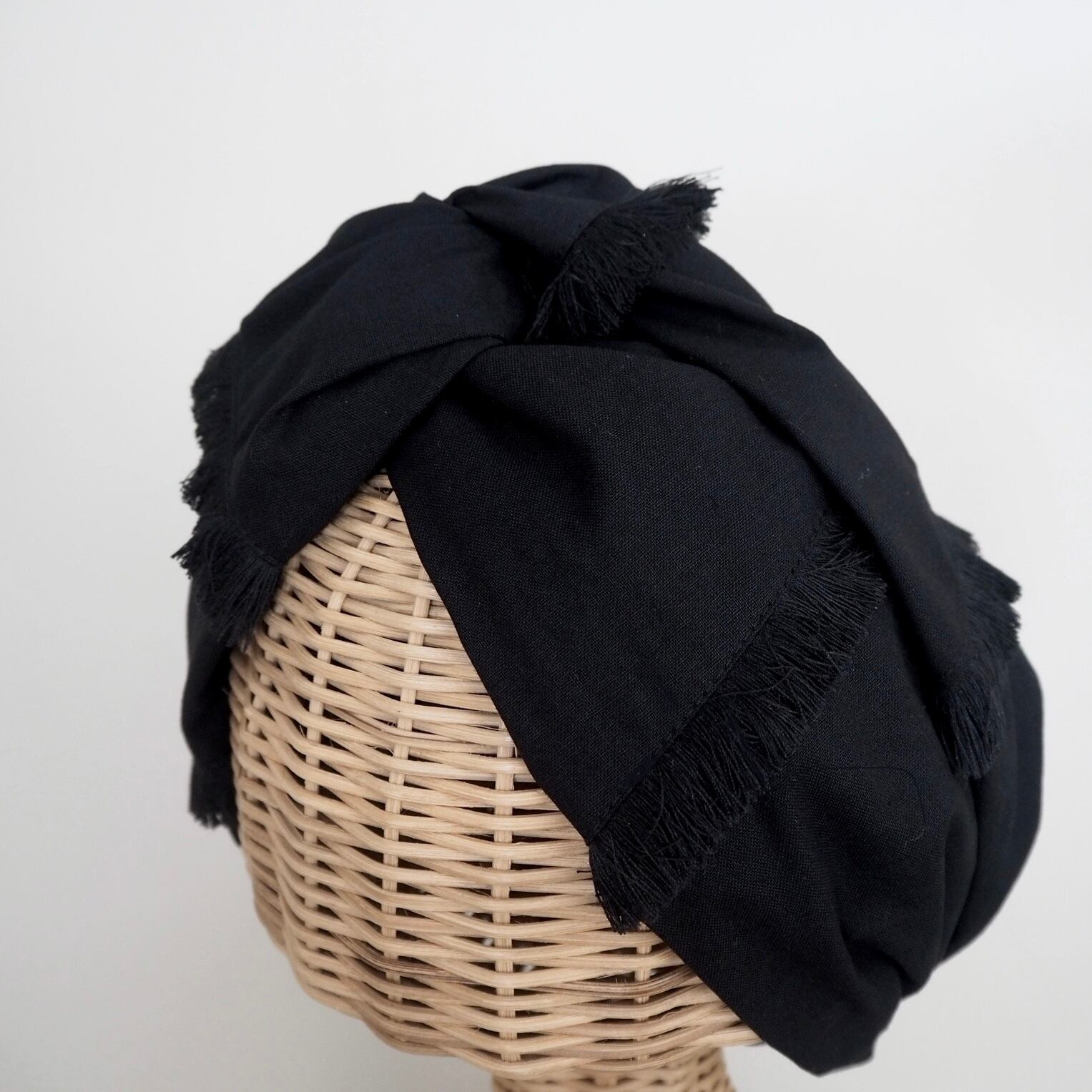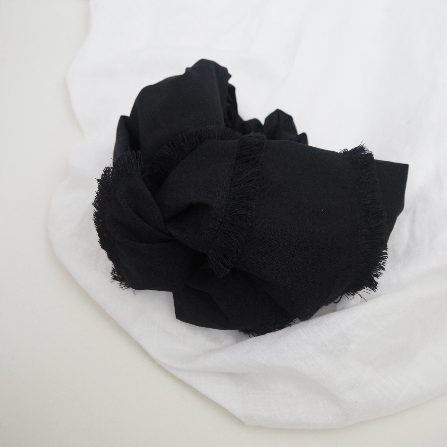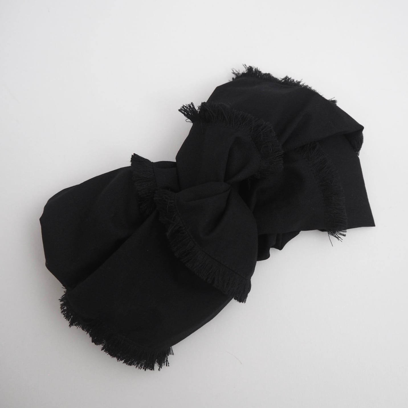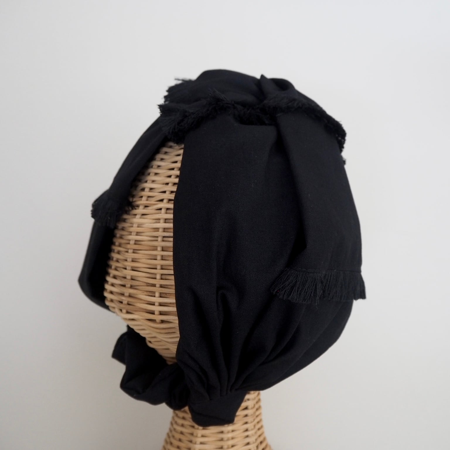 フリンジ生地から作った ヘアターバン (結び) ☆ ブラック