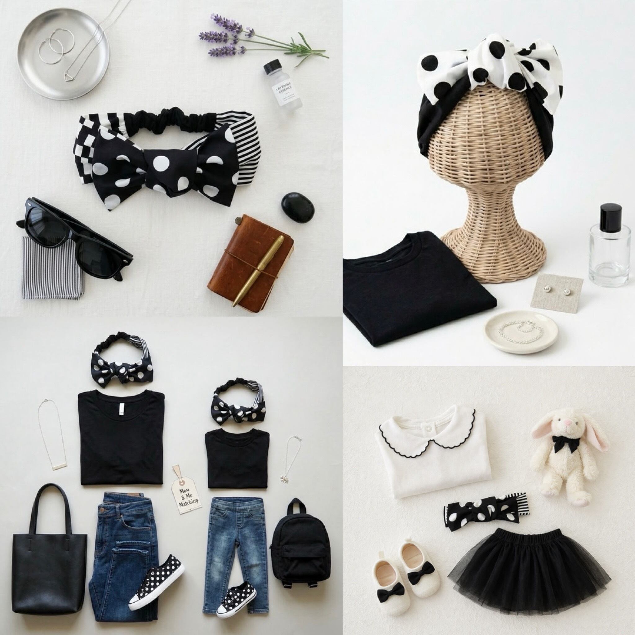 ※同じ生地でヘアターバンもお作りしていますので、姉妹や兄弟と、また親子でお揃いやリンクコーデも可能です。