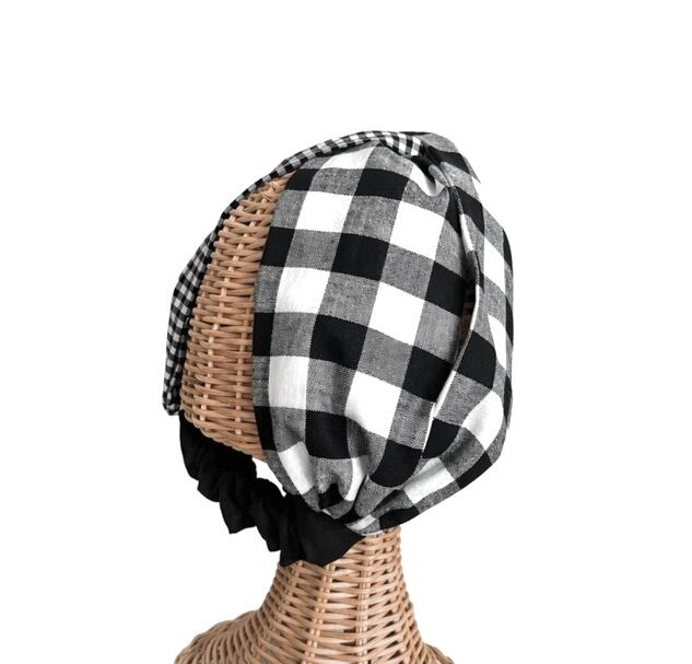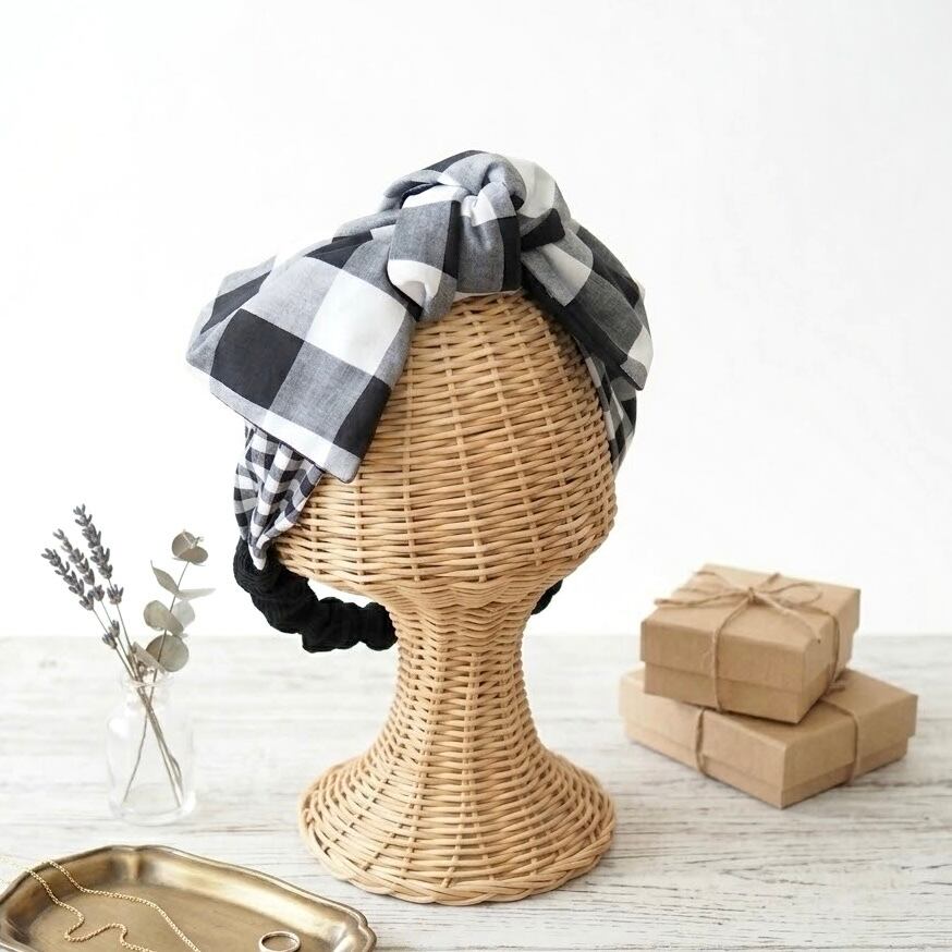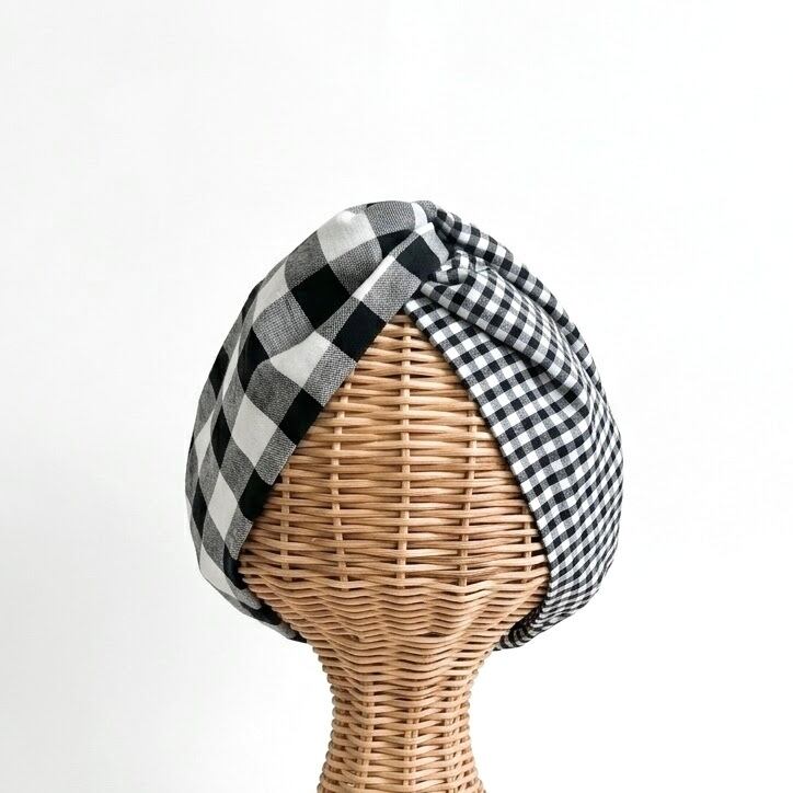 ヘアターバン (結び) ☆ ギンガムチェック モノトーン 幅広