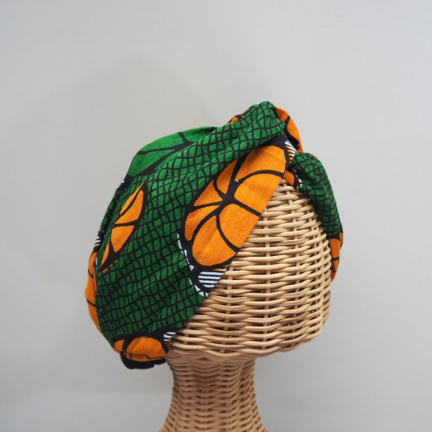 ヘアターバン (結び) ☆ アフリカ グリーン オレンジ