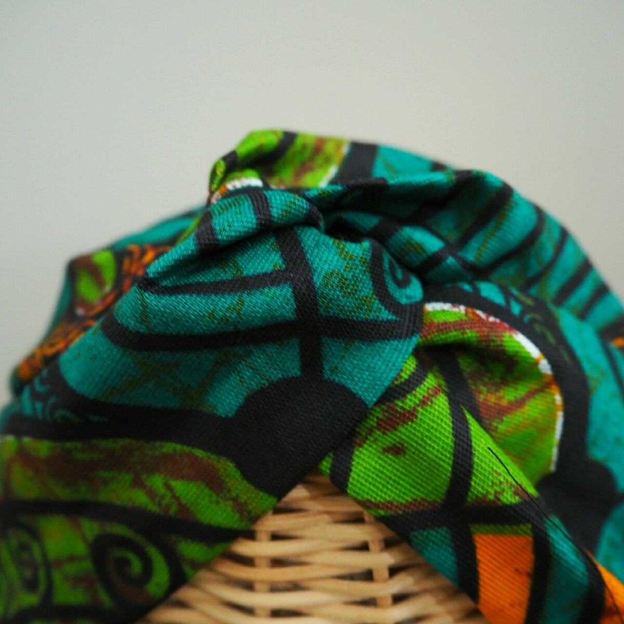 ヘアターバン (結び) ☆ アフリカ グリーン ぐるぐる模様