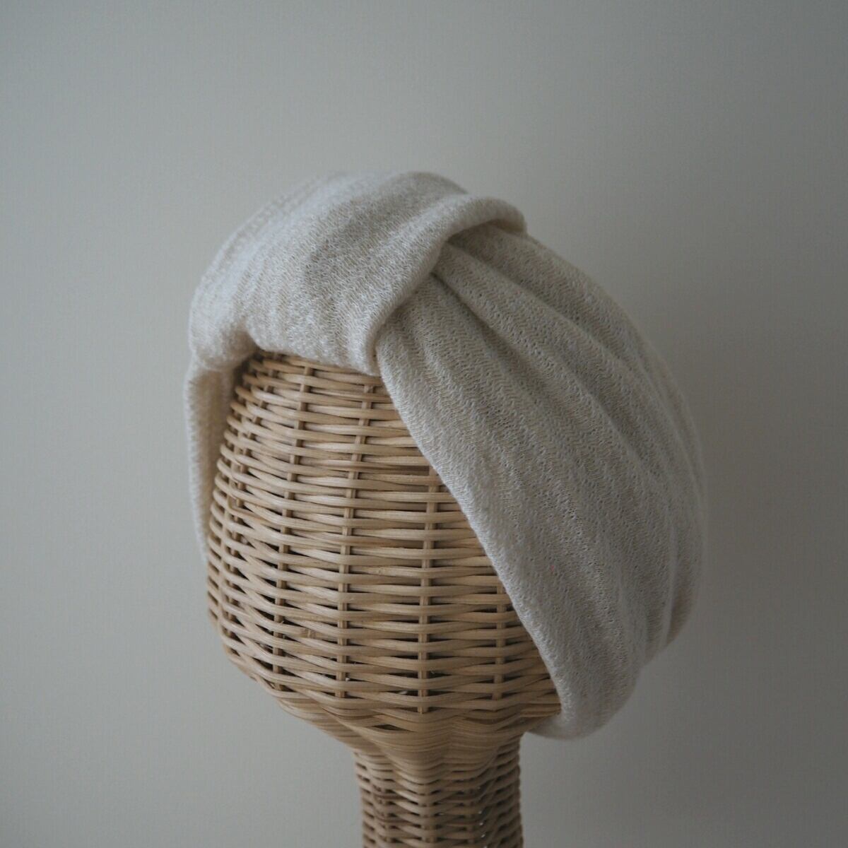 ナチュラルベージュの柔らかいニット生地で作ったループ状のシンプルなヘアターバンです。