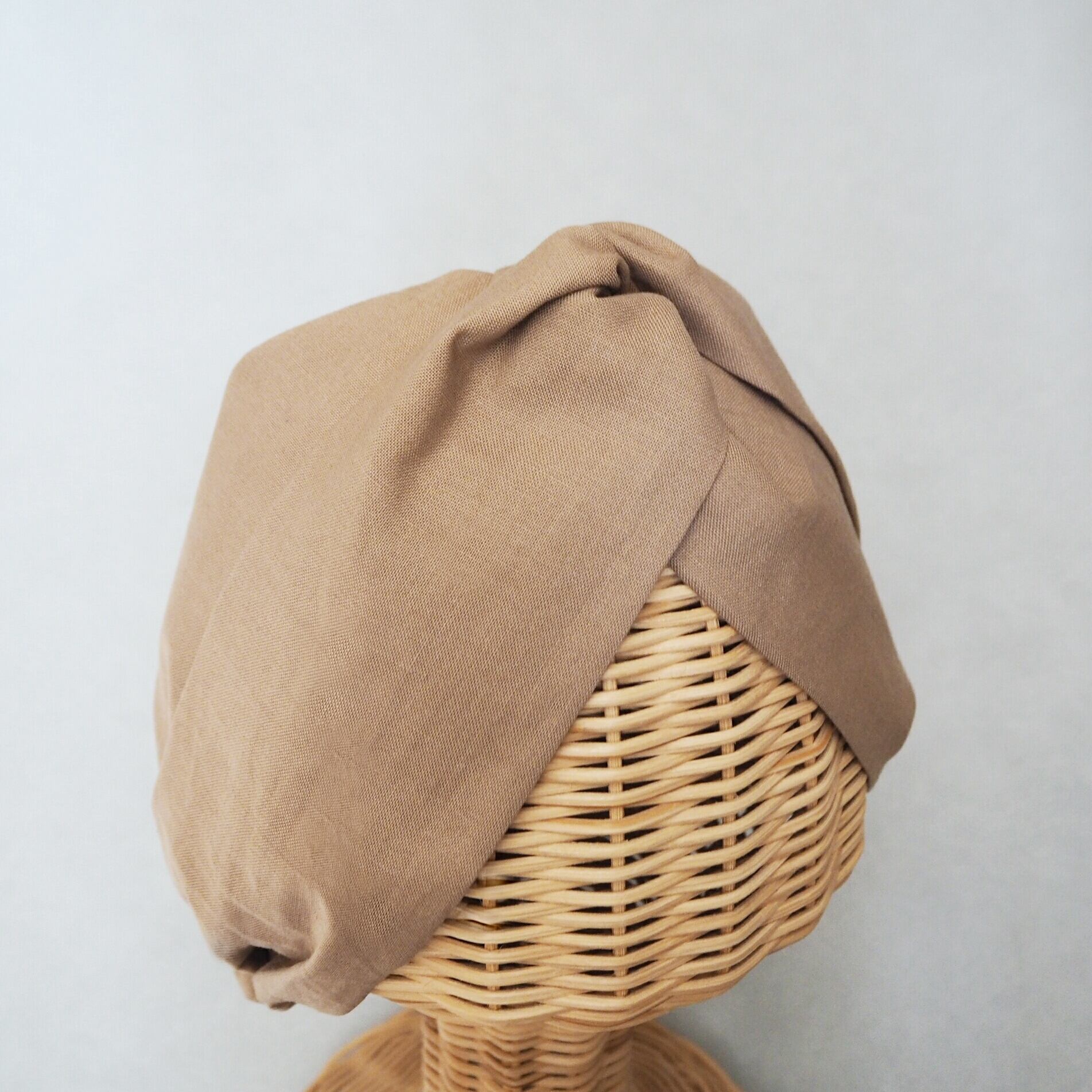 ベージュのシンプルな薄手の綿生地で作った結び目の様な二本使いのヘアターバンです☆