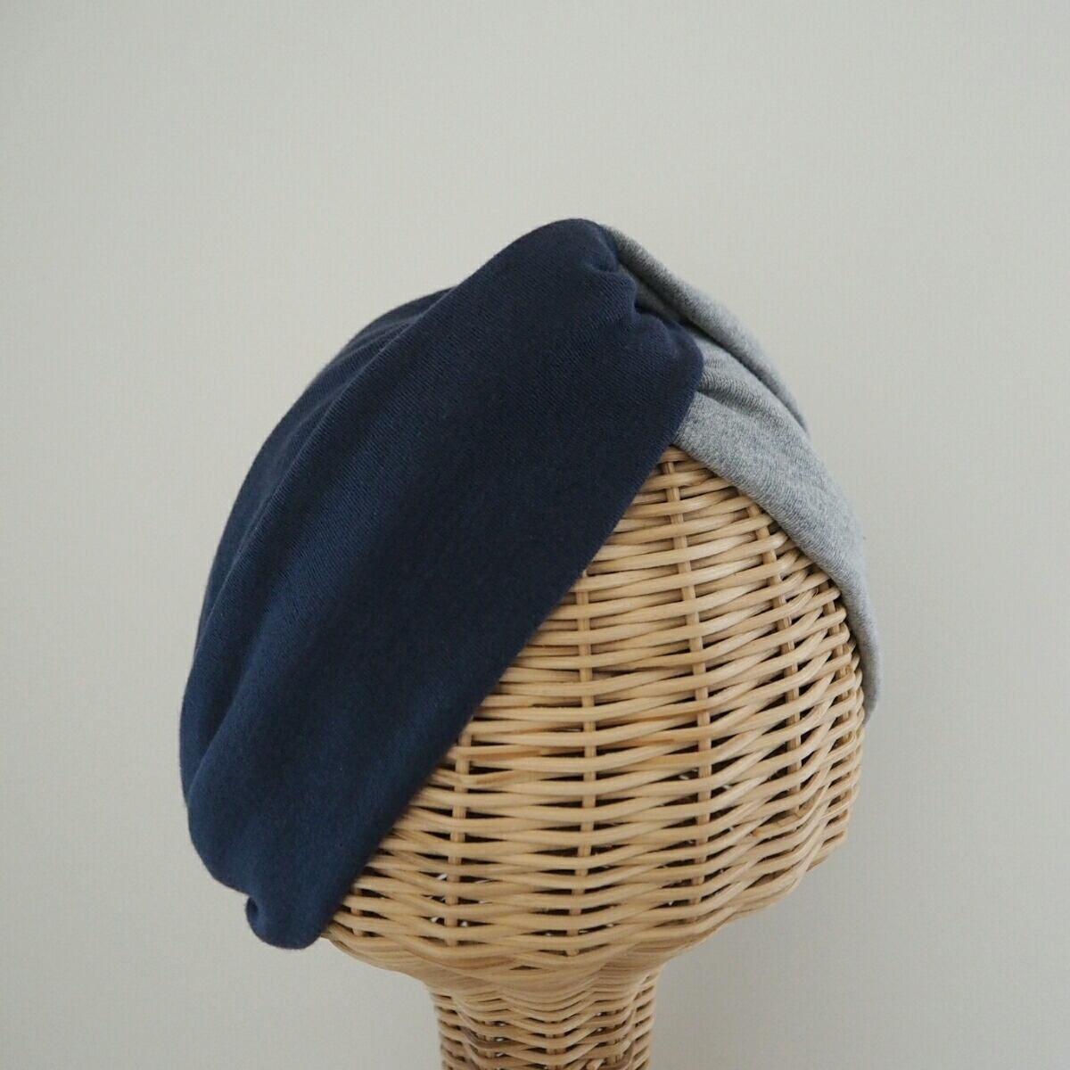 柔らかく肌さわりの良いカットソー生地を使用した、結び目の様な二本使いのヘアバンドです。