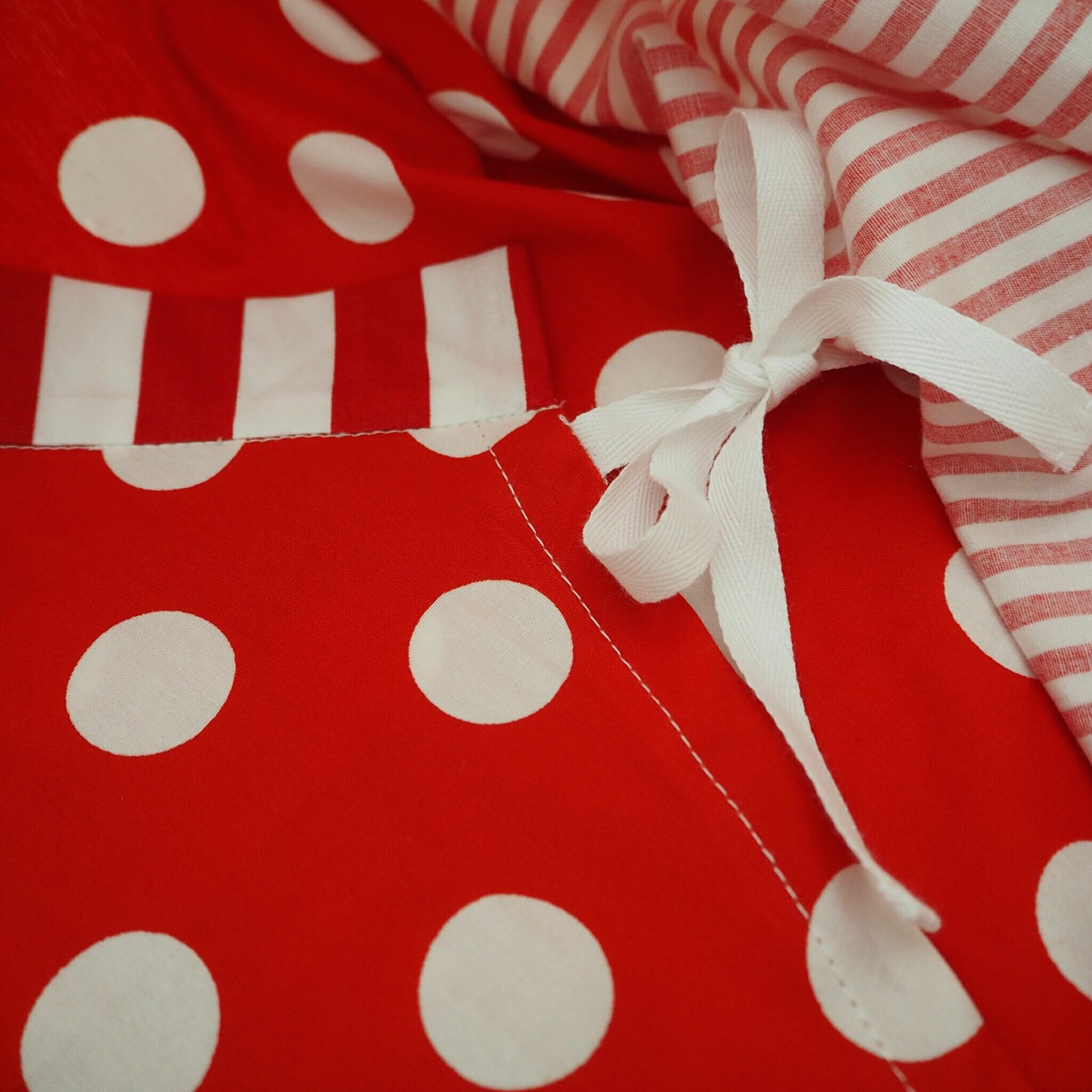 こちらは水玉×ストライプボーダー組み合わせの浴衣(甚平)の赤バージョンです。
