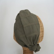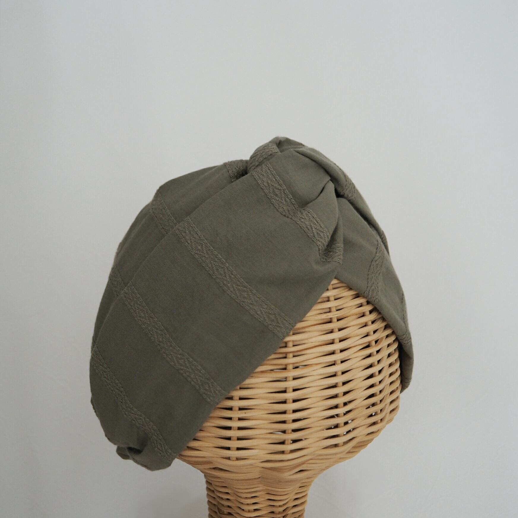 ドビー織りのストライプ模様が素敵な綿生地を組み合わせた結び目の様な二本使いのヘアターバンです。