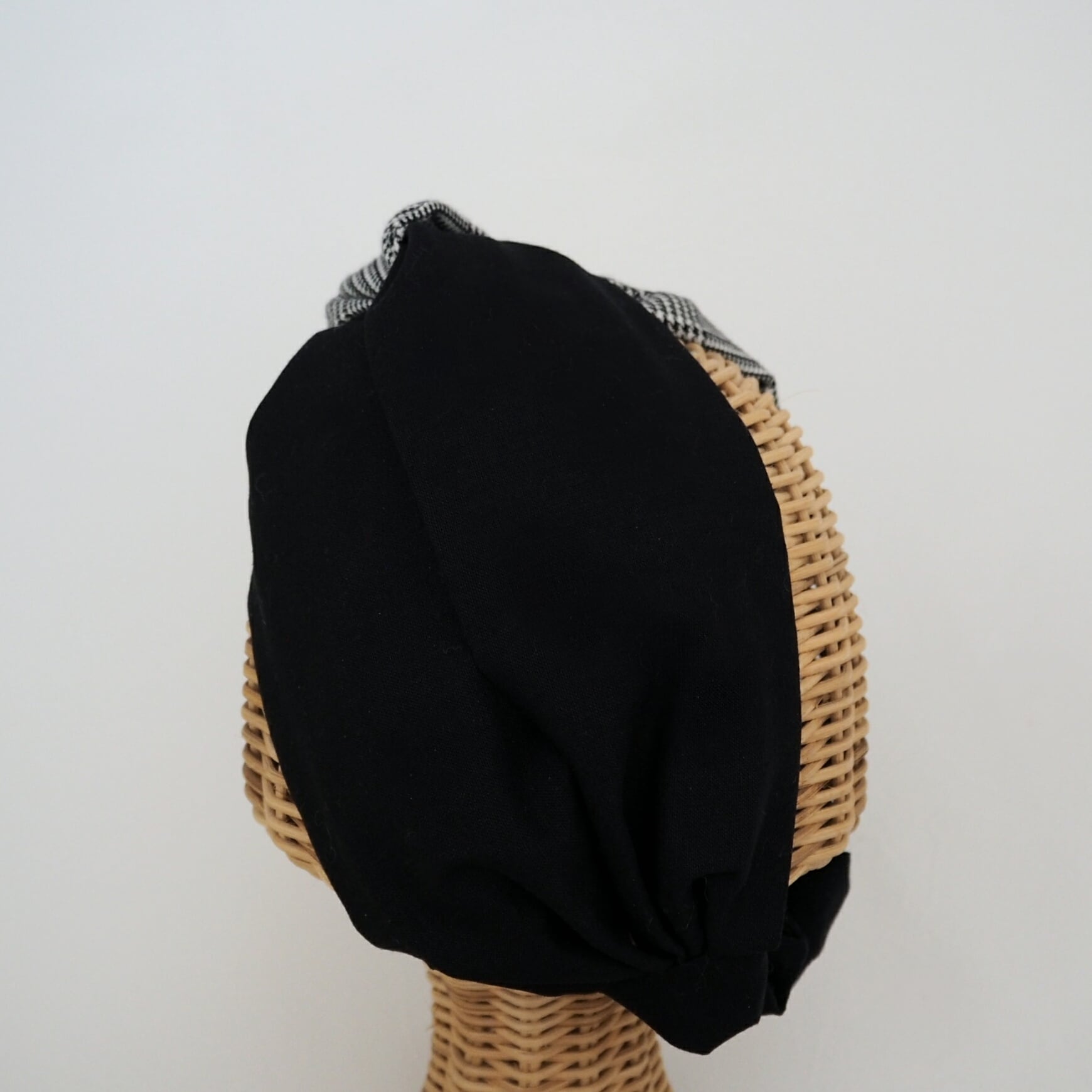 グレンチェック生地と黒の生地を使用した、結び目の様な二本使いのヘアバンドです。