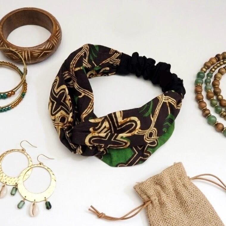 鮮やかな色使い、大胆で個性的なパッと目を引く独特な模様が素敵な生地が多く、Tシャツ一枚にアフリカ生地のヘアバンドで一気にオシャレにまとまります。