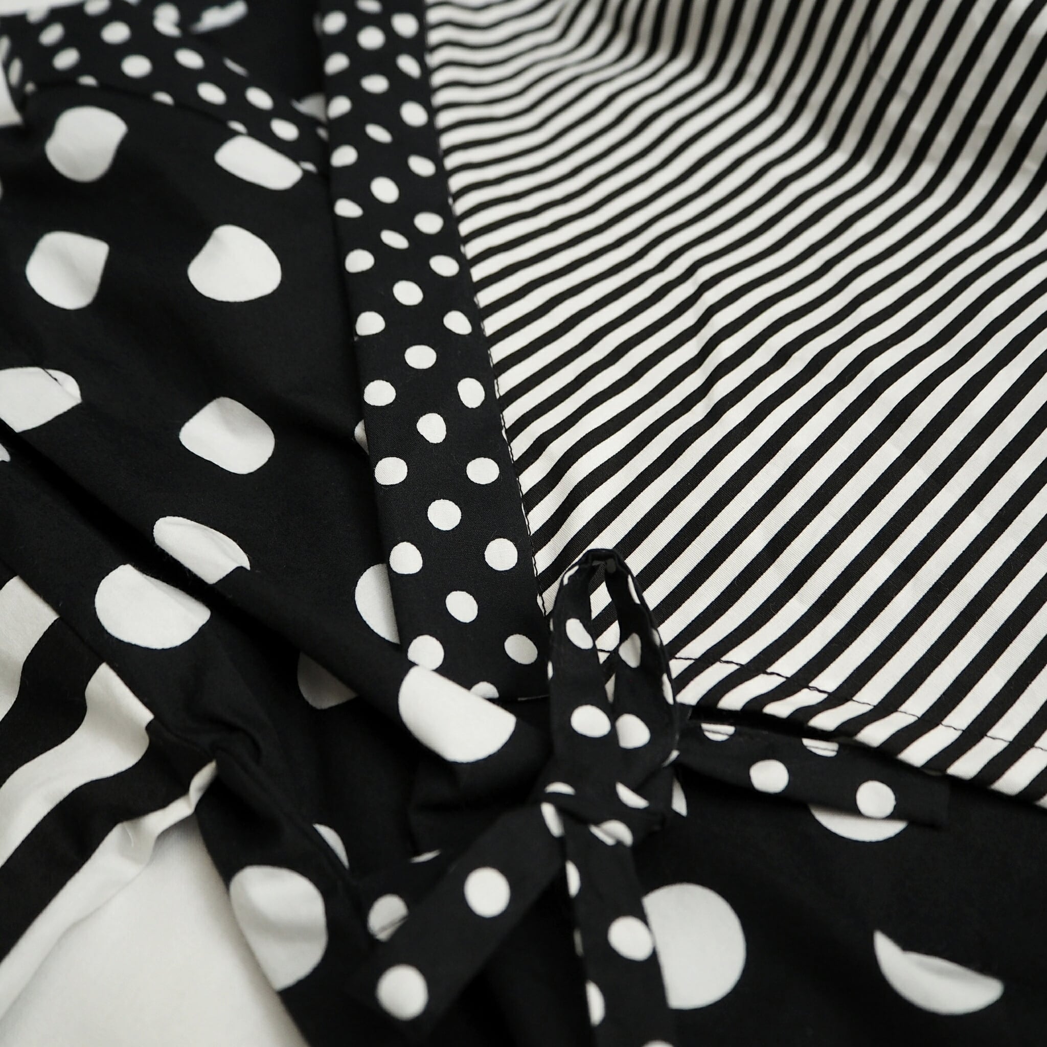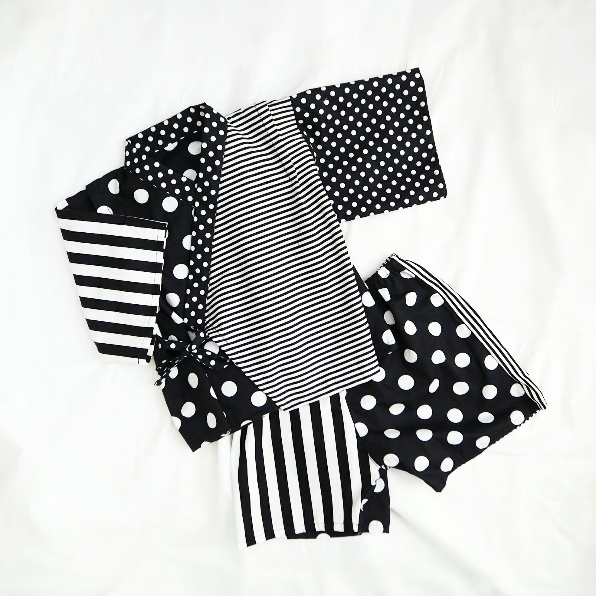 モノトーンのドットと太×細ストライプボーダーの組み合わせで作った、浴衣(甚平)です。