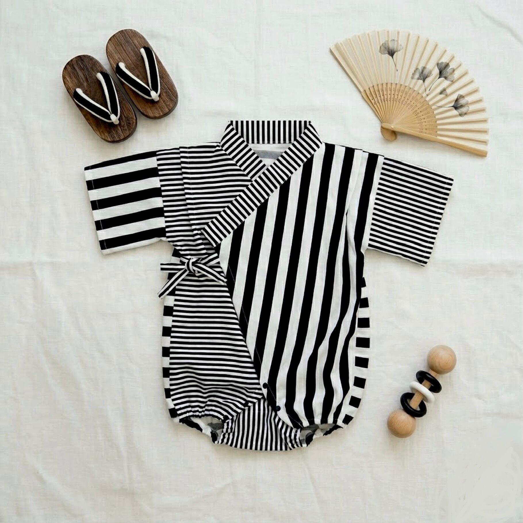ベビー甚平 ☆ モノトーン ストライプ × ボーダー (80)