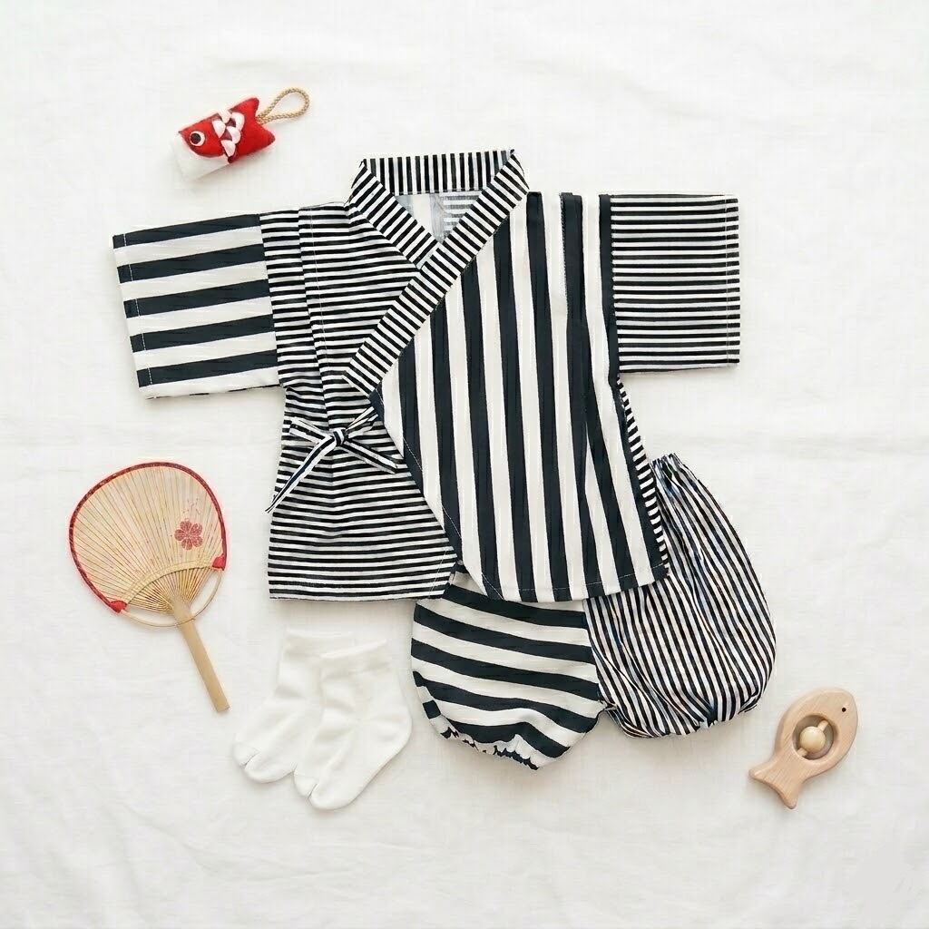 ベビー甚平 (セパレート) ☆ モノトーン ストライプ ボーダー (90)