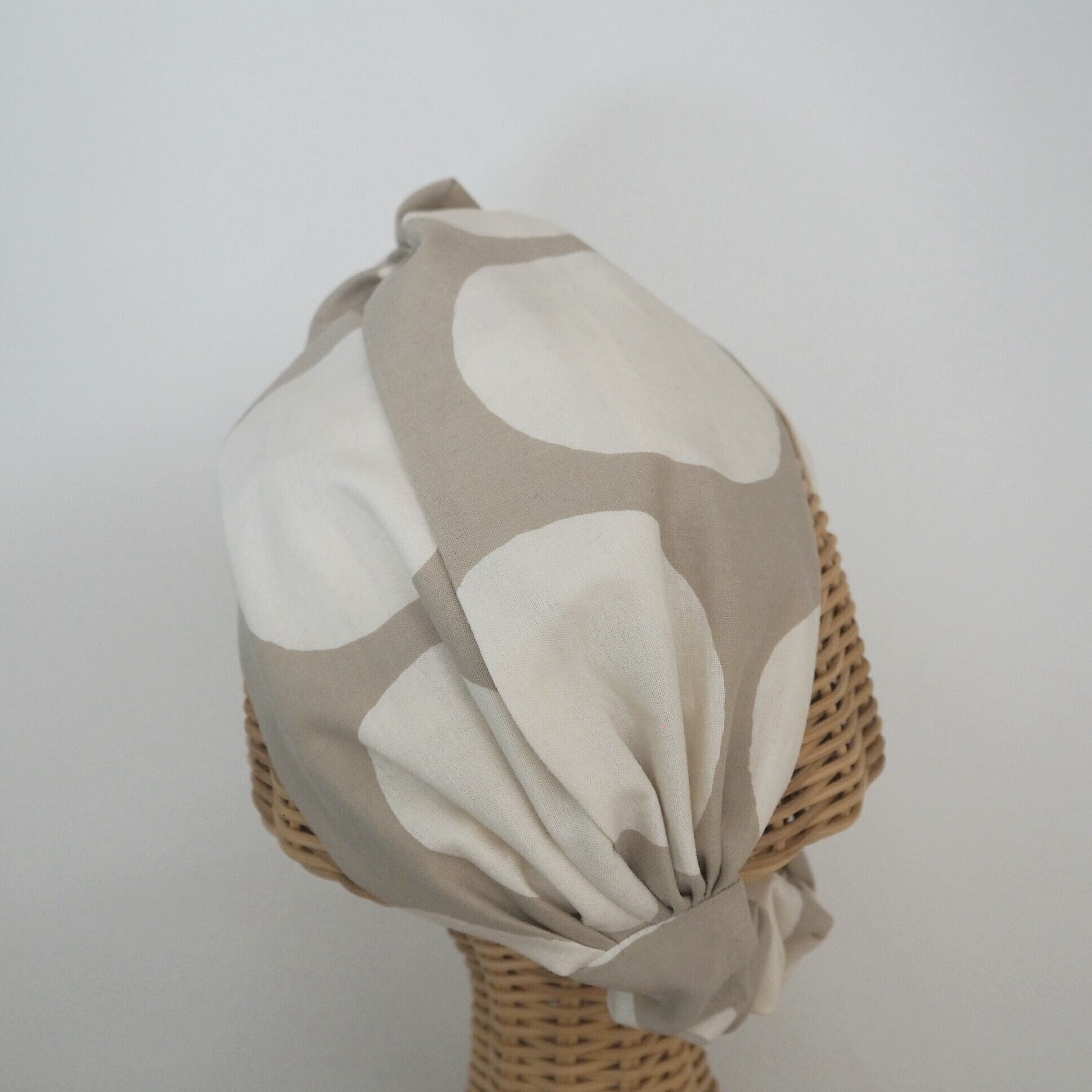 大きな水玉が目をひく幅広タイプのヘアターバンです。